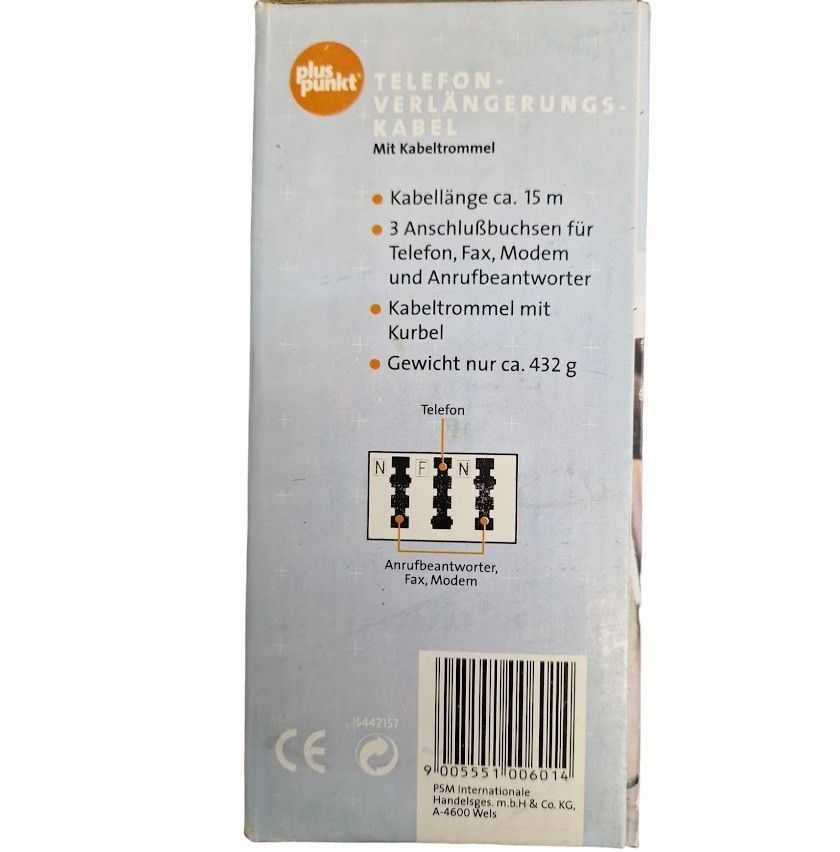 Verlängerungskabel TAE 15m mit Kabeltrommel 3 Buchsen 4 Adriges Rundkabel