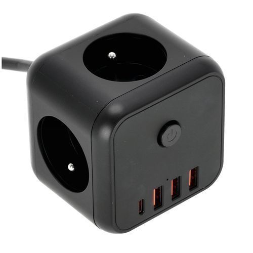 Verlängerungssteckdosenleiste CUBE Schwarz 3Fach Steckdosenleiste USB 1,5 m