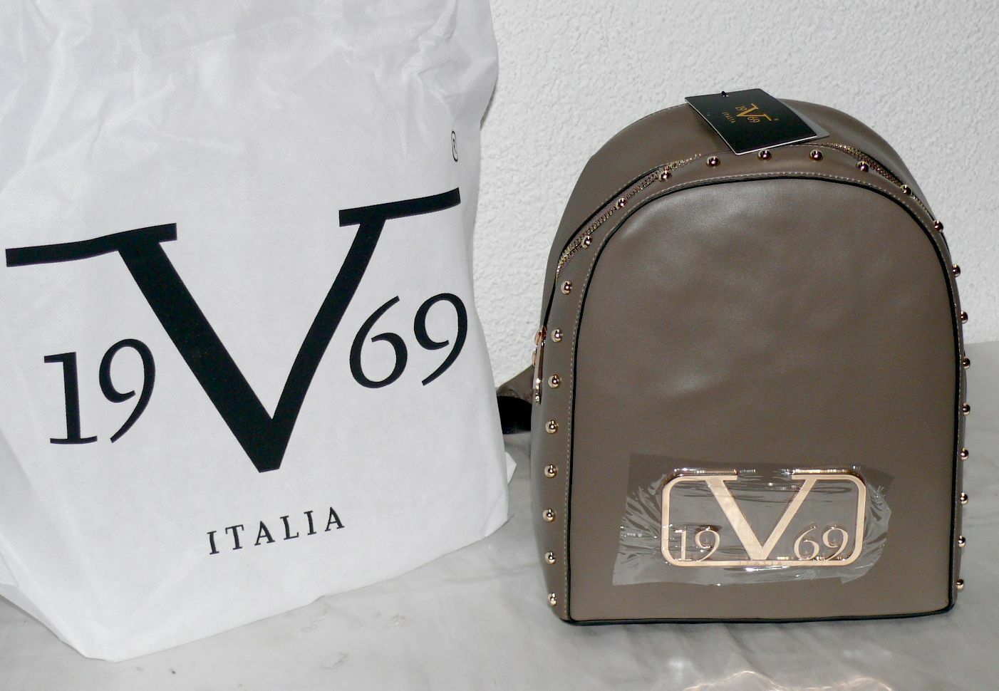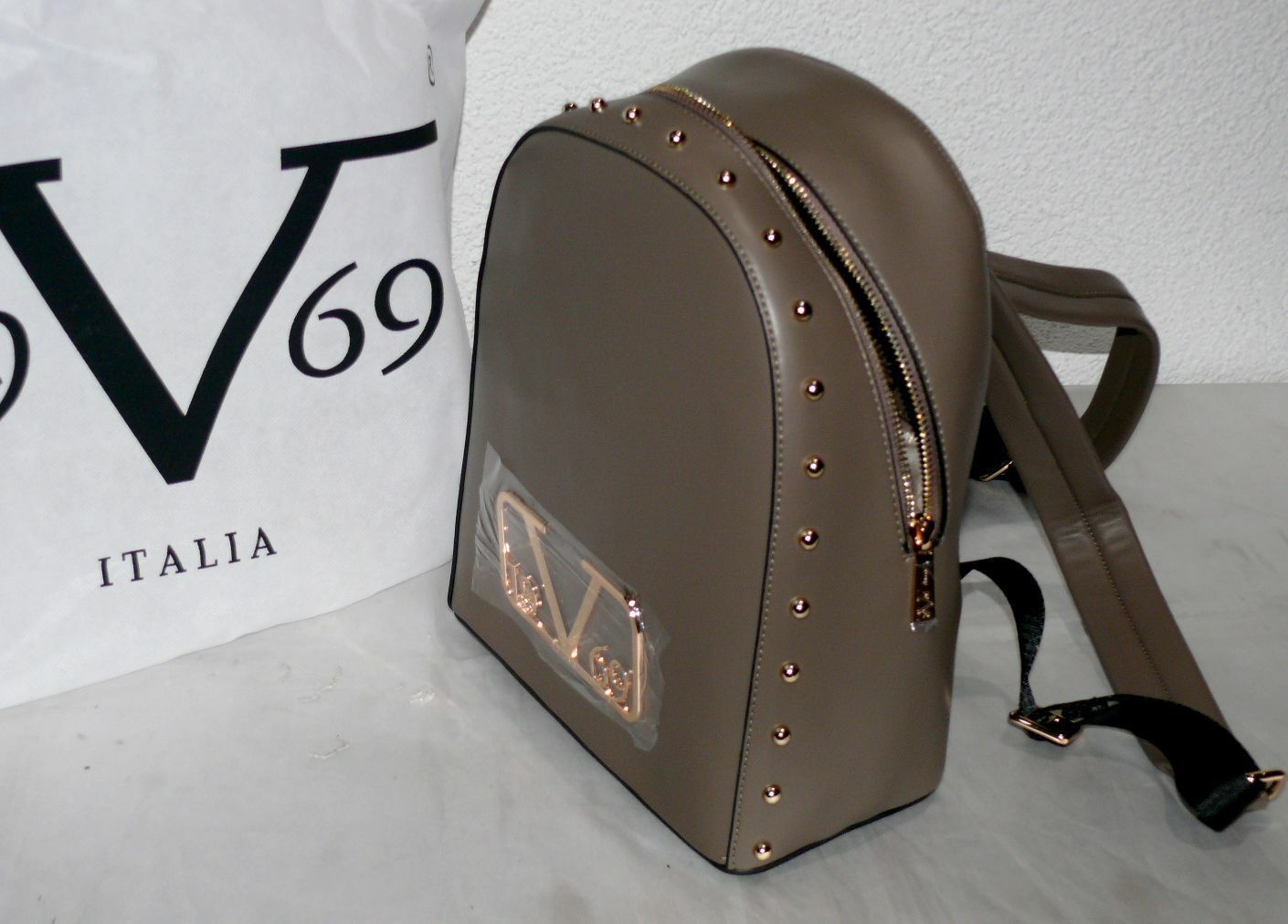 Versace VI20AI0025 Zainetto 19.69 Italia Damen Design Rucksack Tasche Braun Gold
