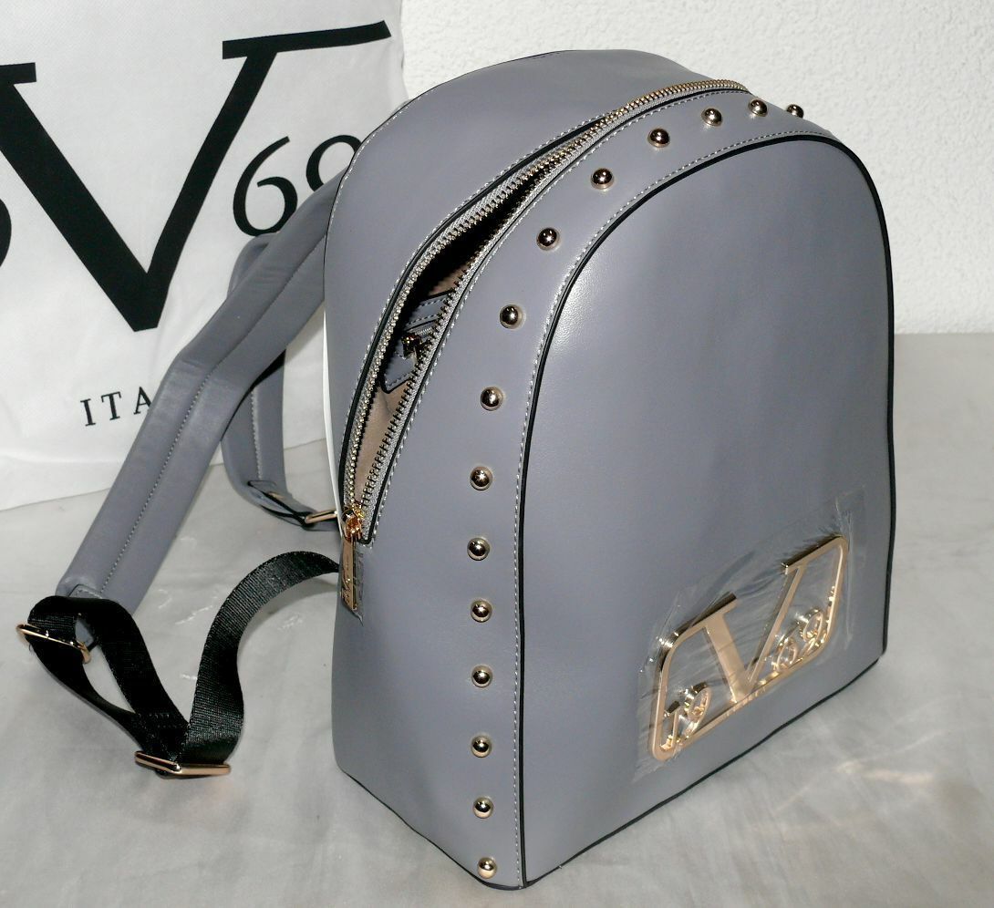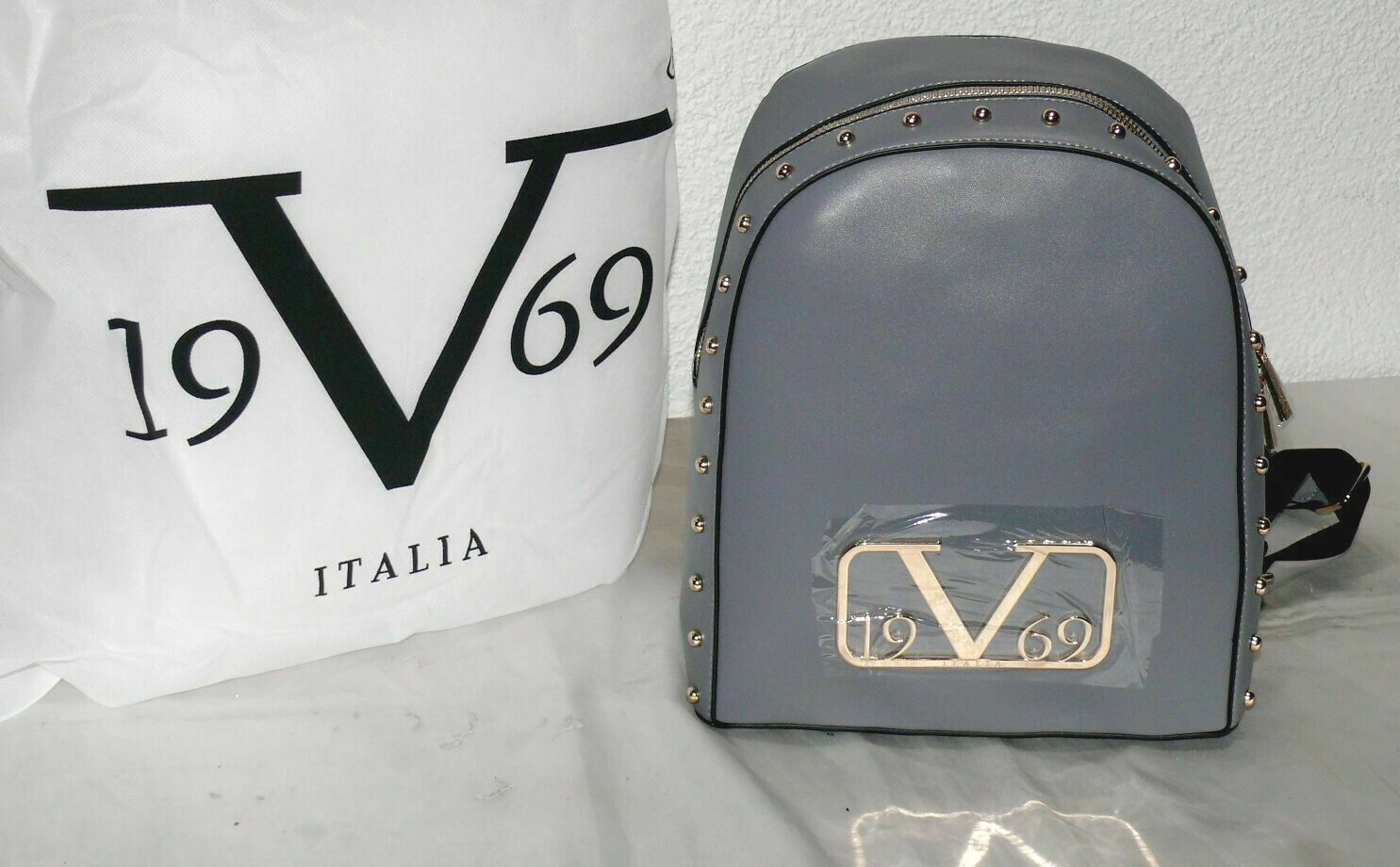 Versace VI20AI0025 Zainetto 19.69 Italia Damen Design Rucksack Tasche Grau Gold