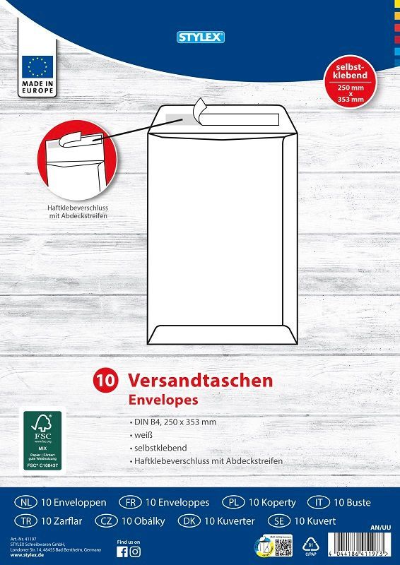 Versandtaschen, DIN B4, 10 Stück, weiß