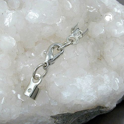 Verschluss-Set für Lederband 10mm Karabiner weißbronze mit 2 Endteilen silberfar