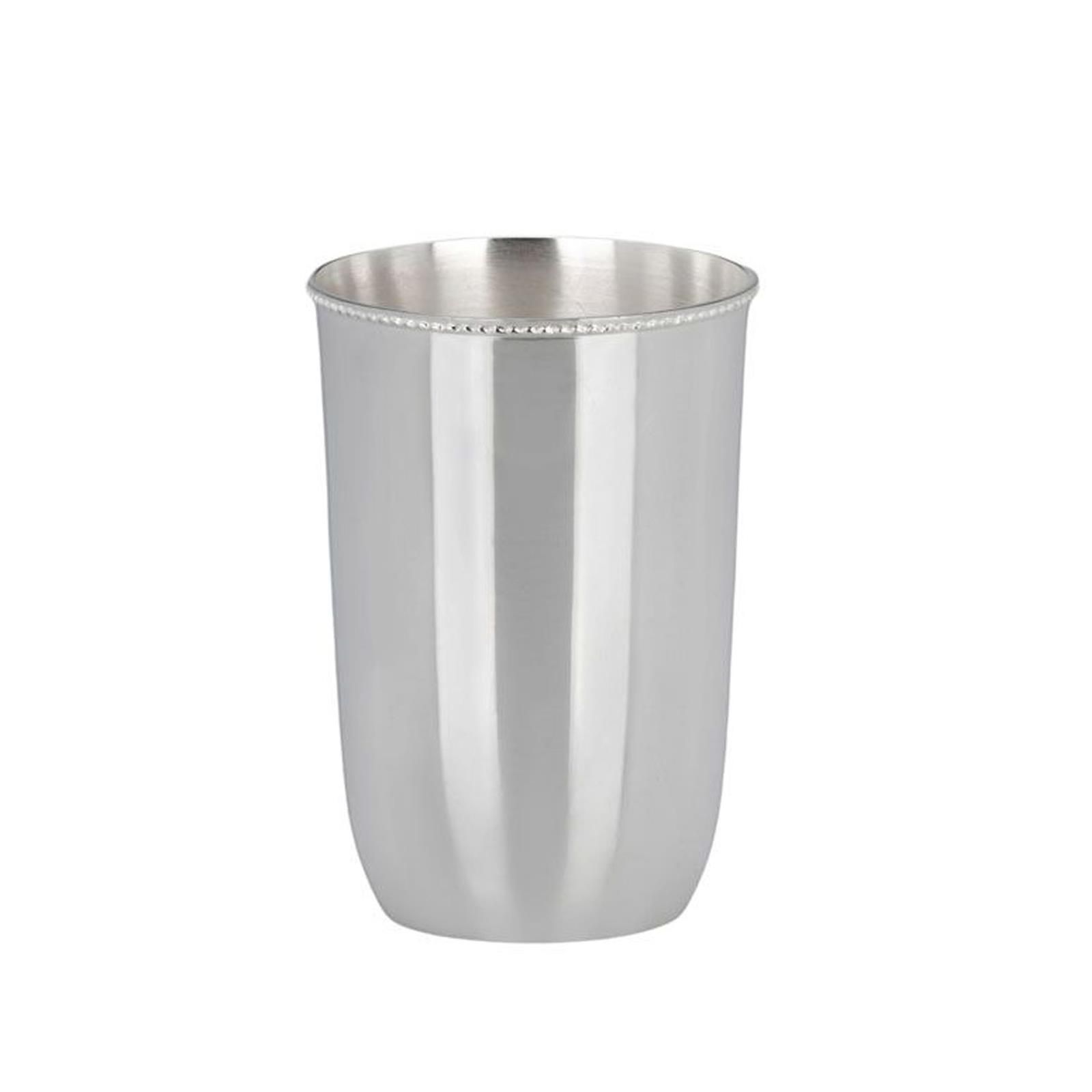 Versilberter hoher Becher 10 cm silberner Trinkbecher mit Perlrand glatt poliert