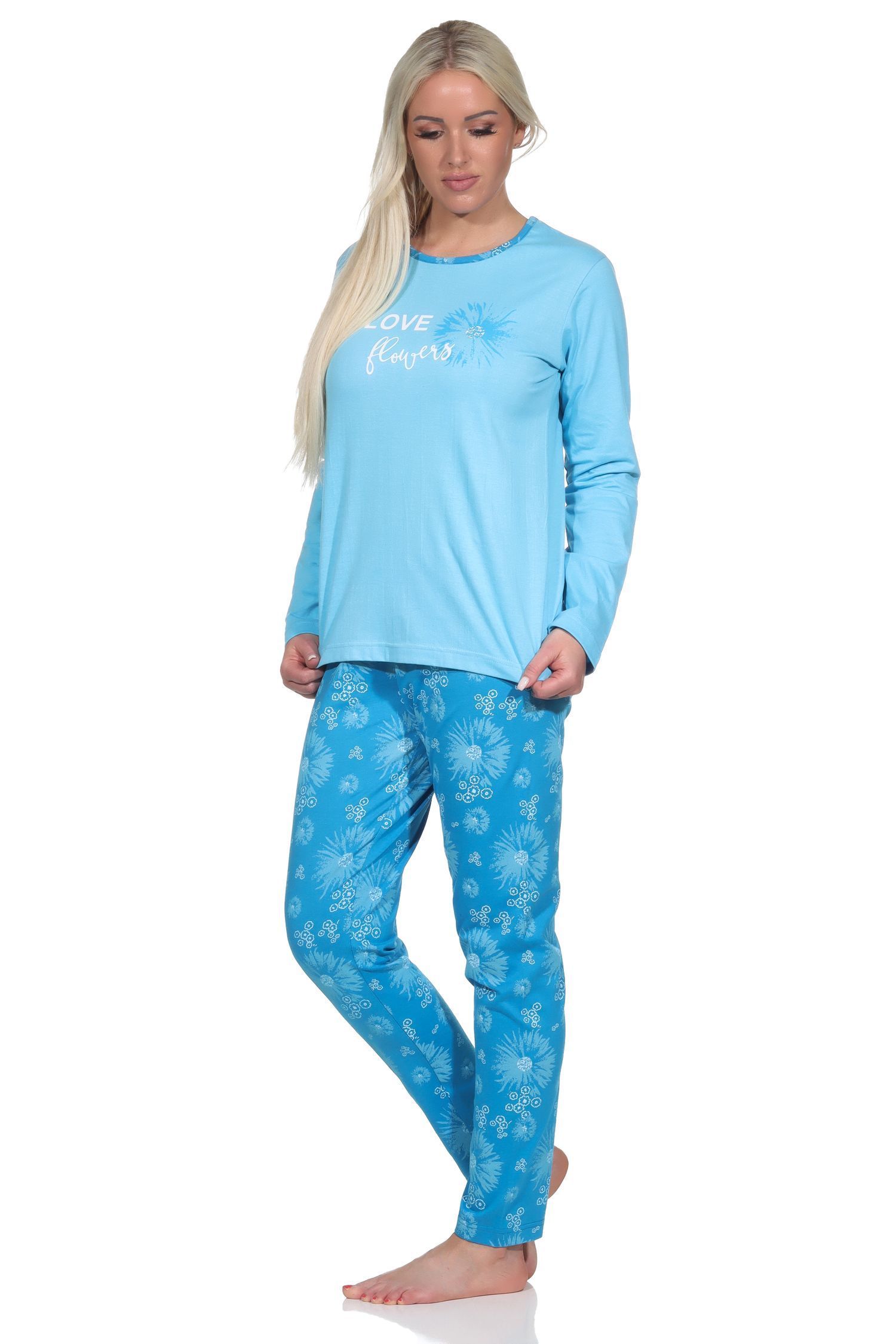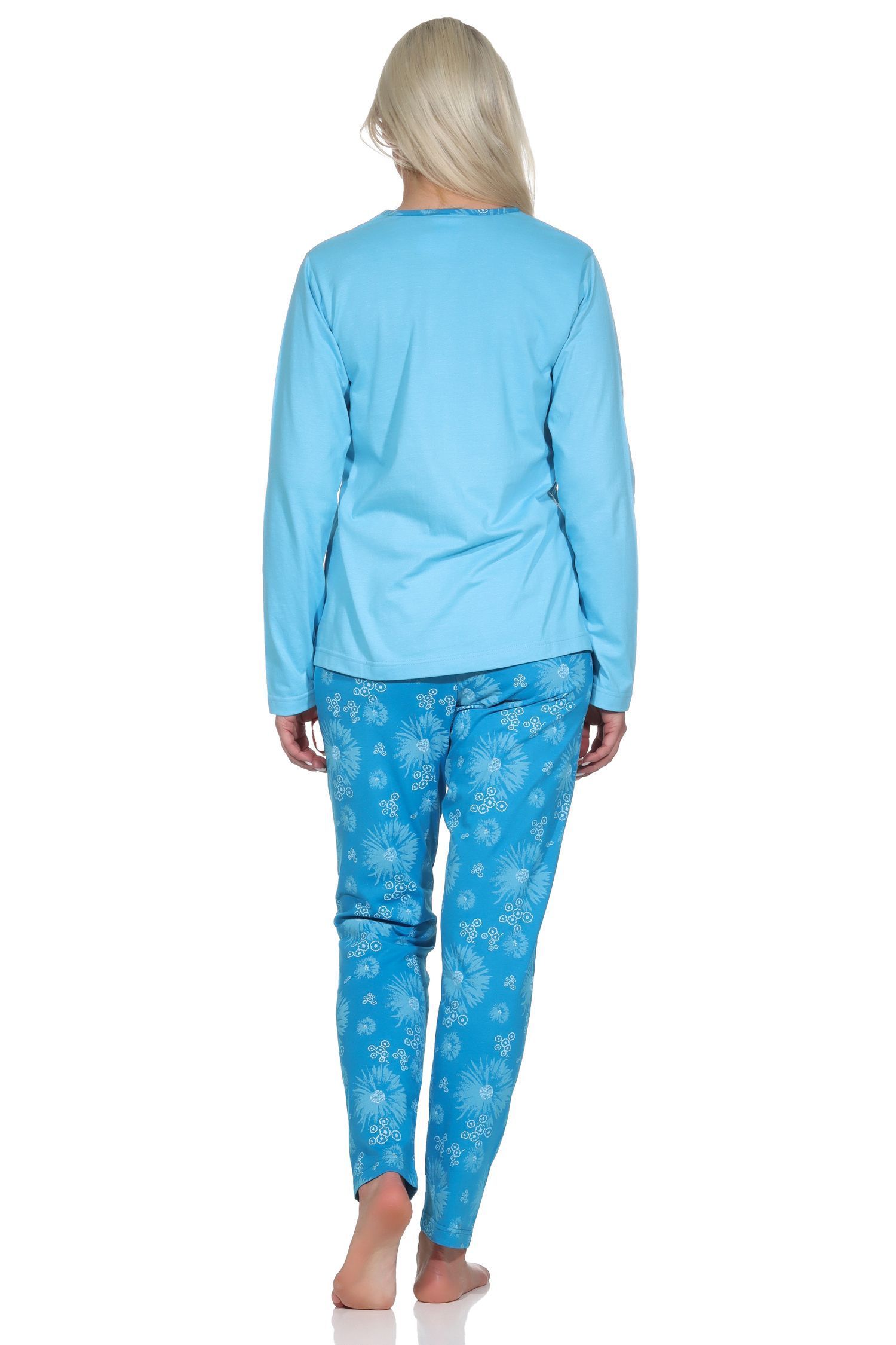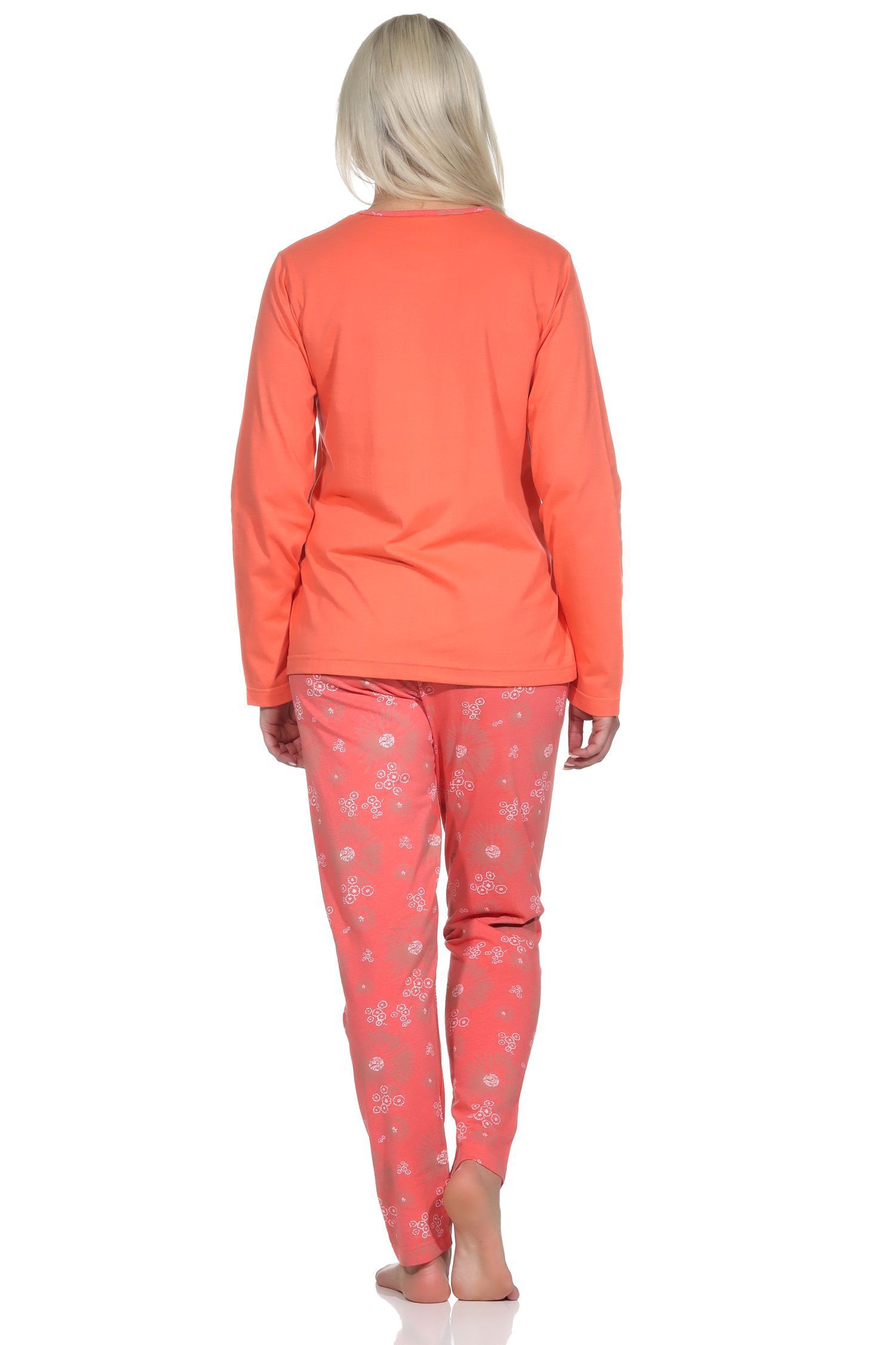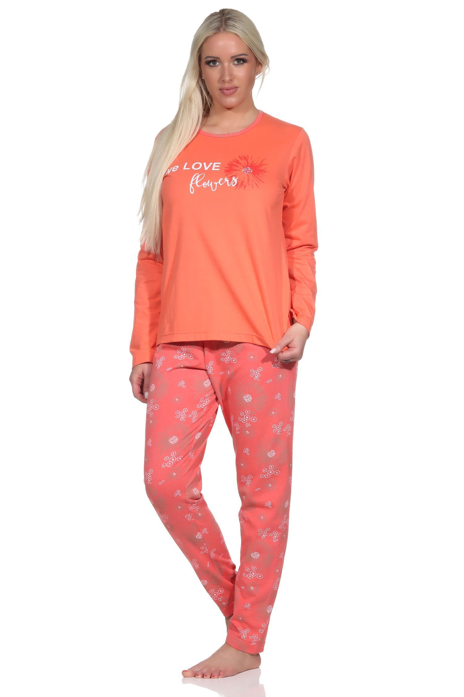 NORMANN Verspielter Damen Pyjama lang, Schlafanzug mit floralem Muster