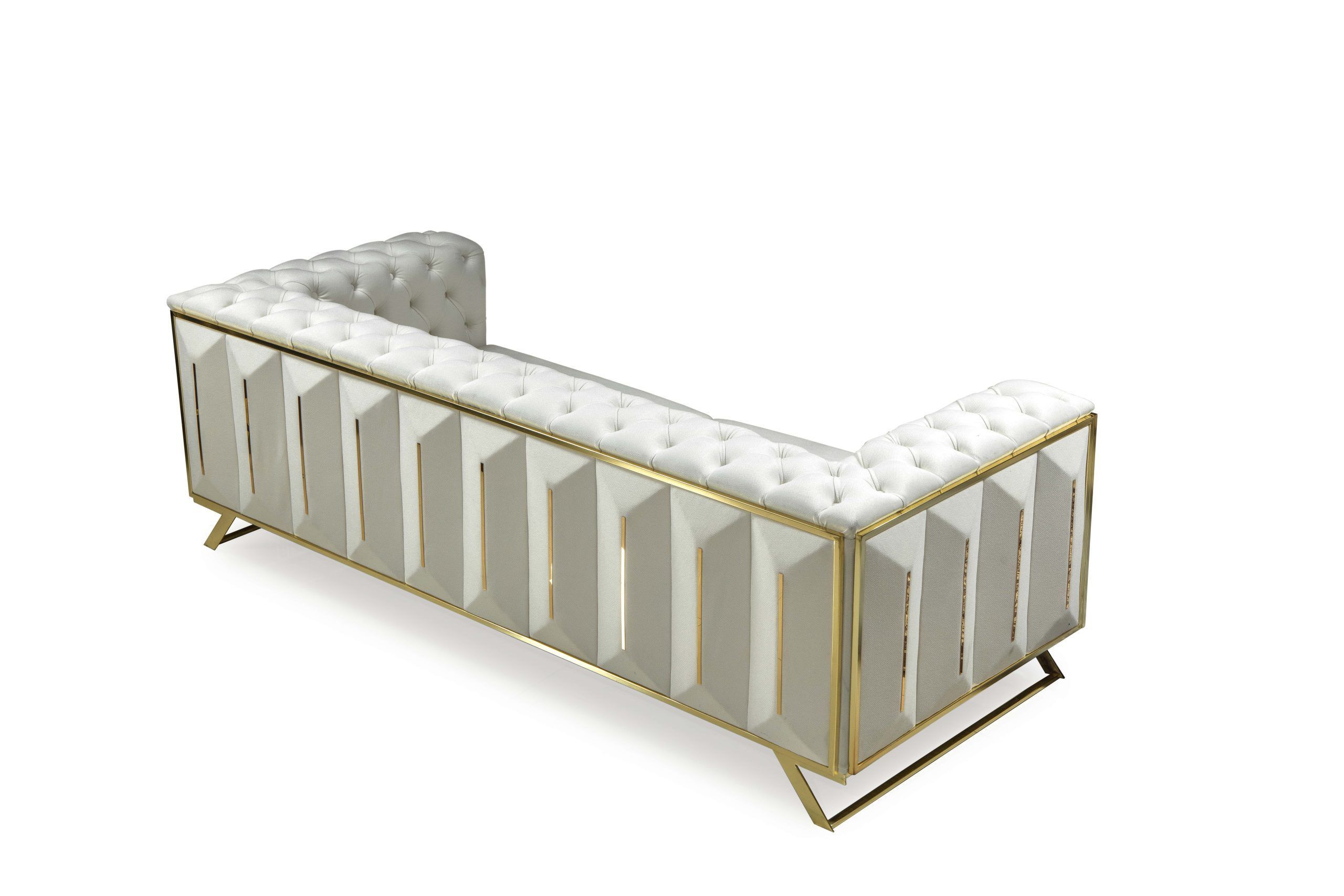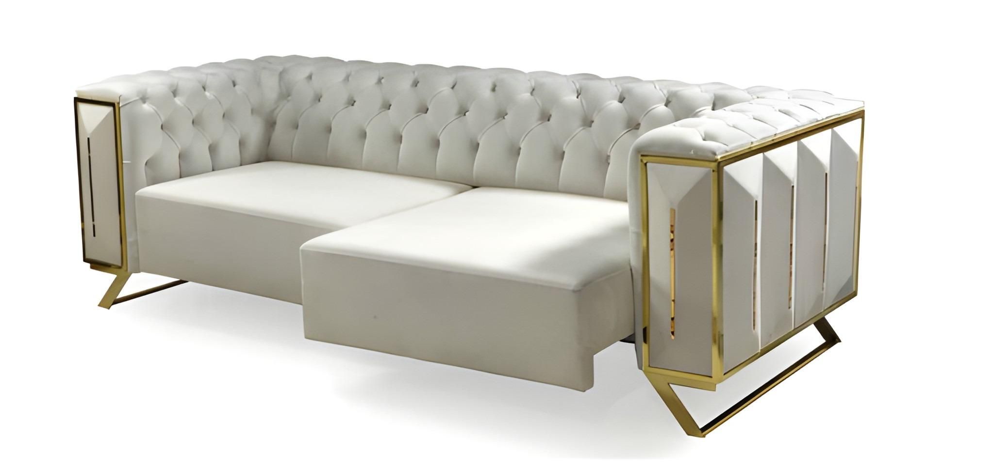 Verstellbare Chesterfield Couch Multifunktion Sofa Dreisitzer Big Beige Gold