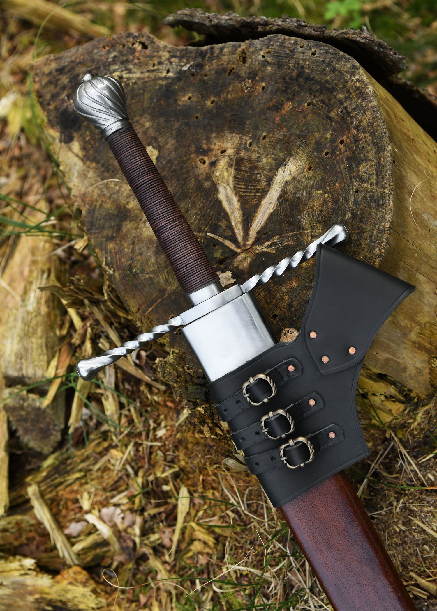 Verstellbarer Schwerthalter aus schwarzem Leder