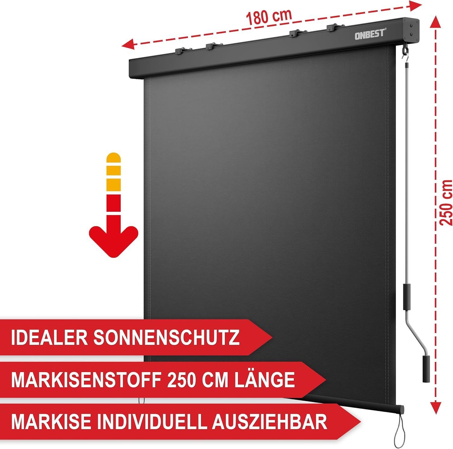 Vertikalmarkise ausziehbar Anthrazit Sichtschutz Windschutz 250 x 180 cm (44476)