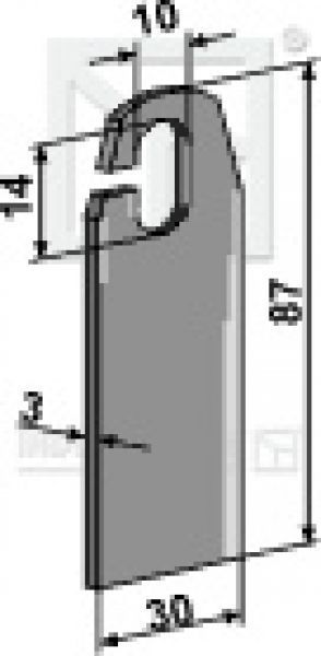 Vertikutiermesser 63-AMA-56 passend für Amazone Mulcher Technische Datem: Best.-Nr. 63-AMA-56 Orig.-Nr. 8356000 Gewicht 0,054 kg Dicke 3 mm Länge 87 mm Breite 30 mm Bohrung Aufhängung 10X17 mm Artikel passend für Fabrikat: Amazone GH02; GHL02; GHLT02 Obenstehende Original Ersatzteilnummern dienen au