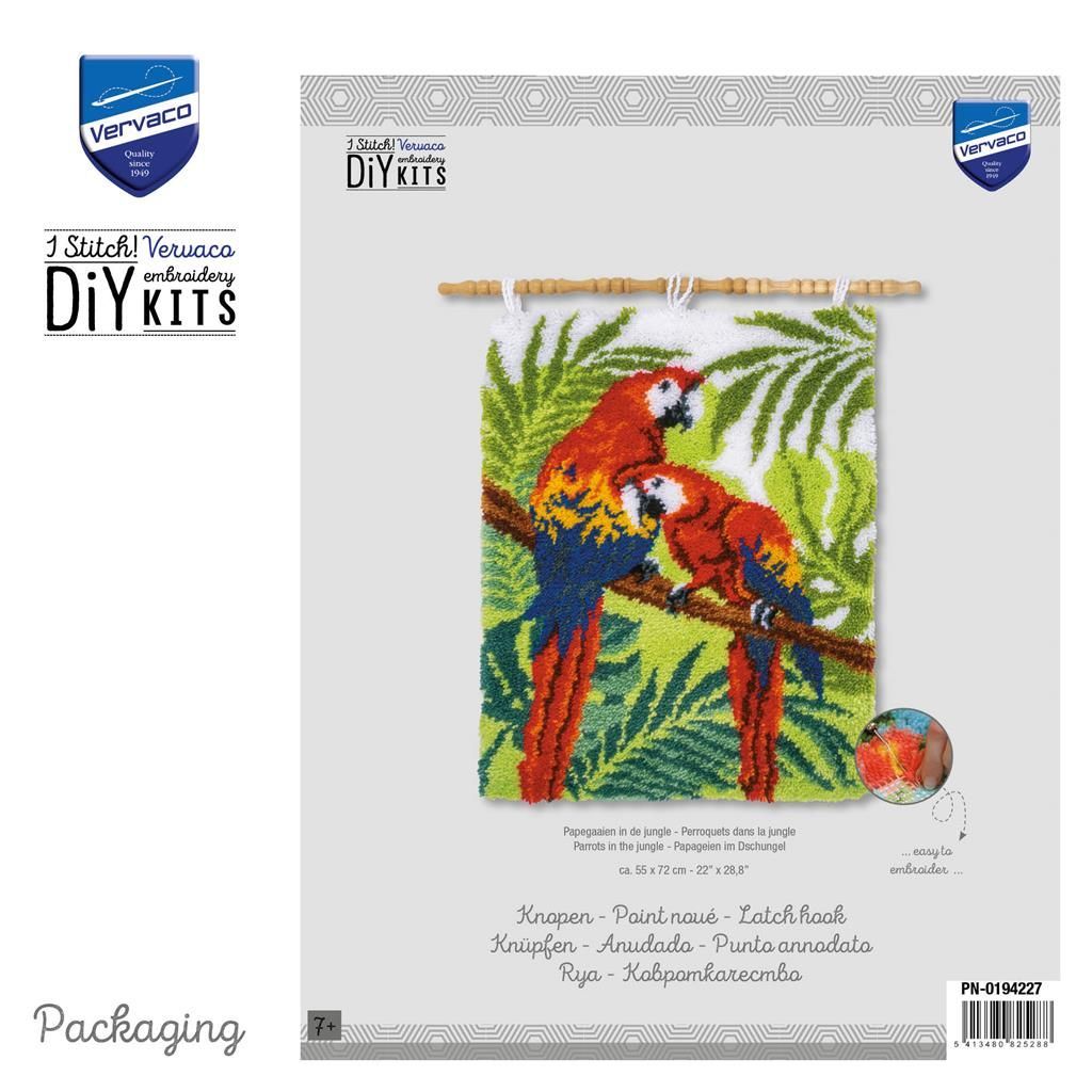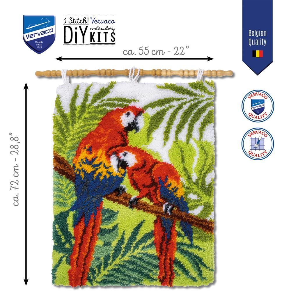 Vervaco Knüpfteppich / Wandbehangpackung Papageien im Dschungel