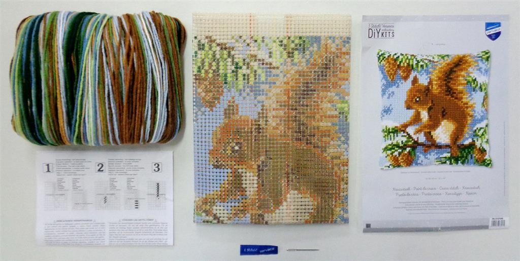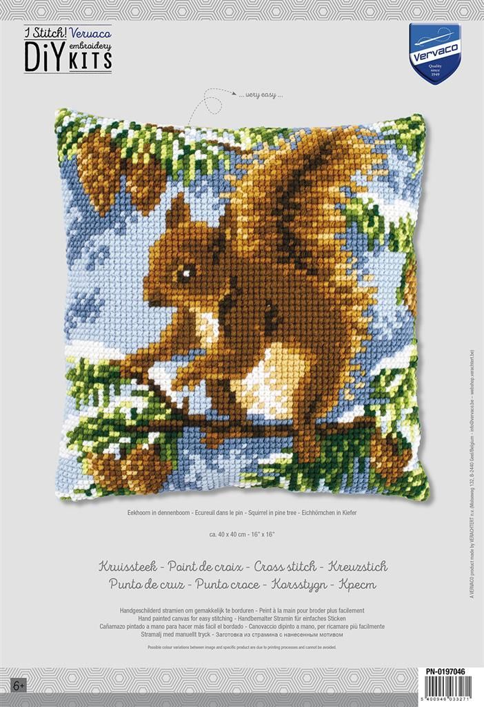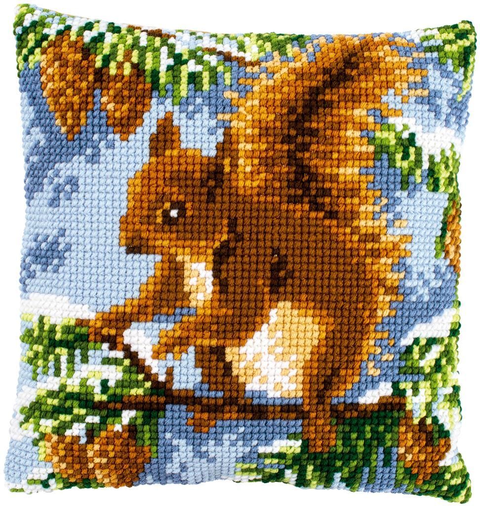Vervaco Kreuzstich-Kissen-Set Eichhörnchen - Stickbild vorgezeichne