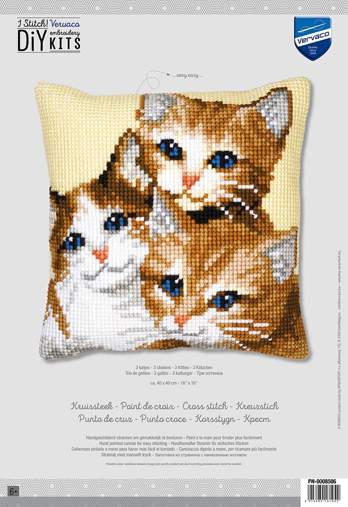 Vervaco Kreuzstich-Kissen-Set Kätzchen - Stickbild vorgezeichnet
