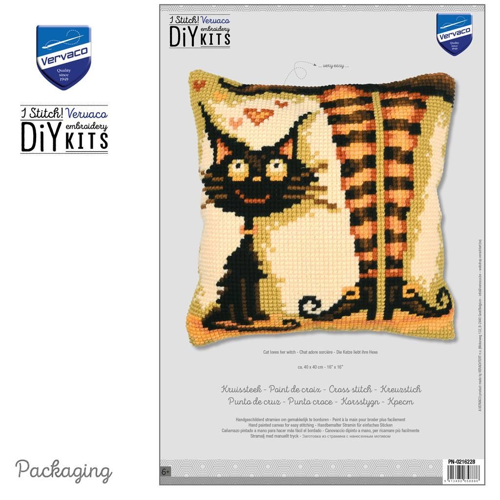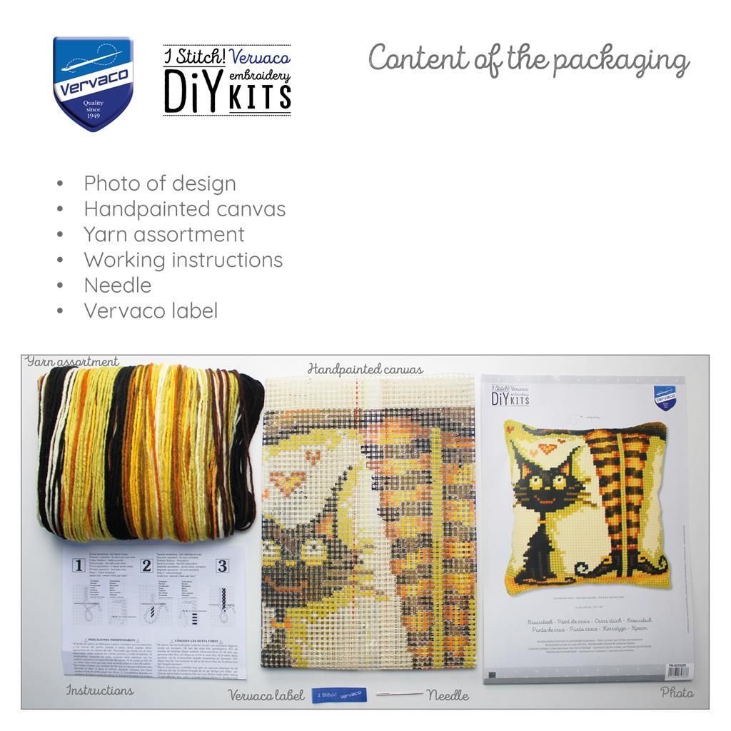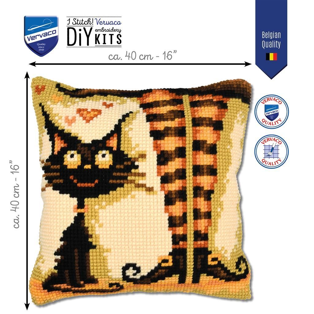 Vervaco Kreuzstich-Kissen-Set Katze - Stickbild vorgezeichnet