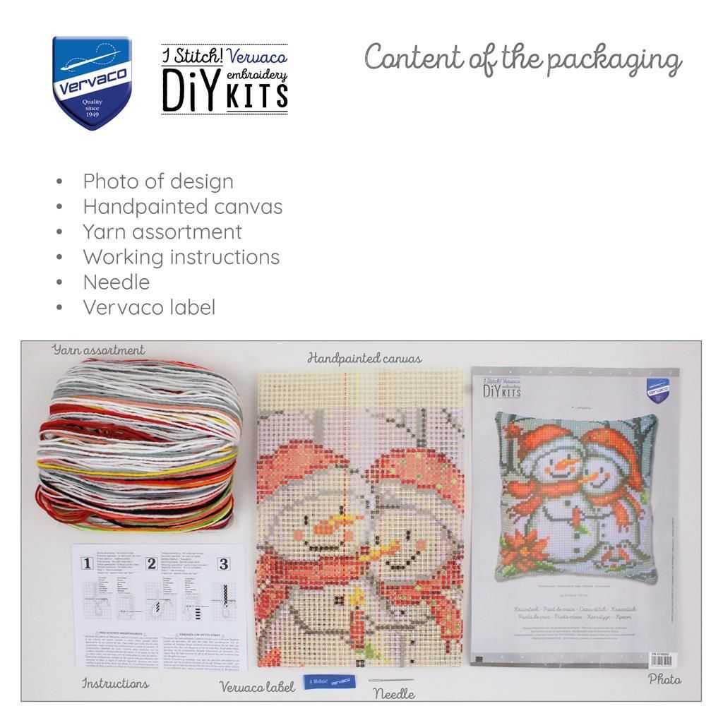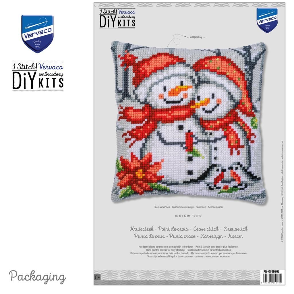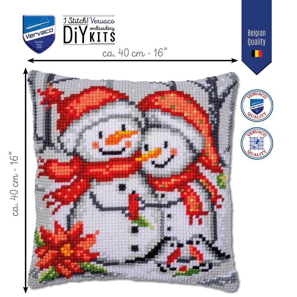 Vervaco Kreuzstich-Kissen-Set Schneemänner - Stickbild vorgezeichnet