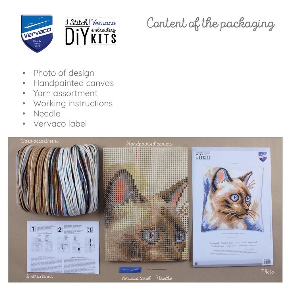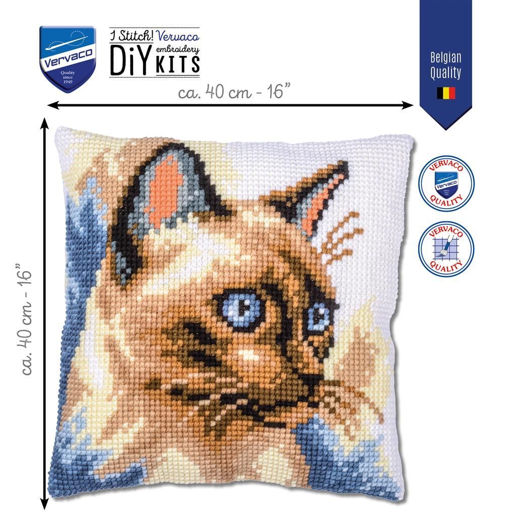 Vervaco Kreuzstich-Kissen-Set Siamkatze - Stickbild vorgezeichnet