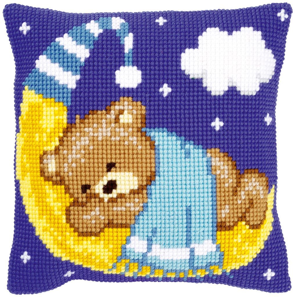 Vervaco Kreuzstichkissen Teddy auf Mond- blau