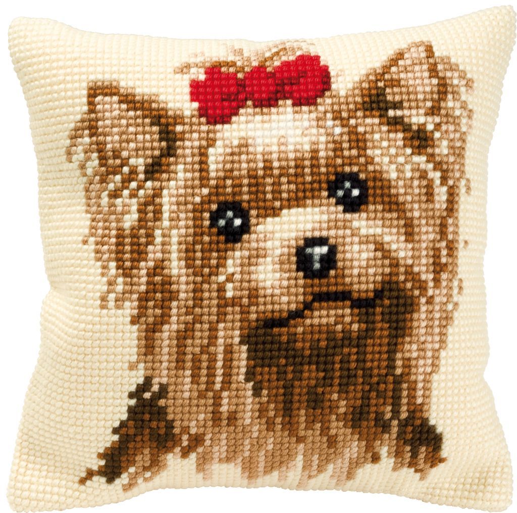 Vervaco PN-0008538 Stickkissen Hund mit roter Schleife