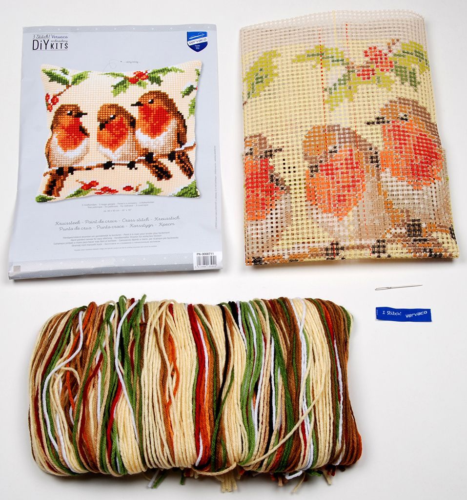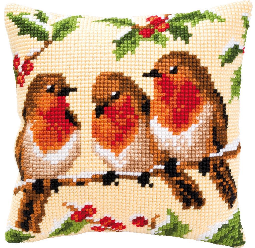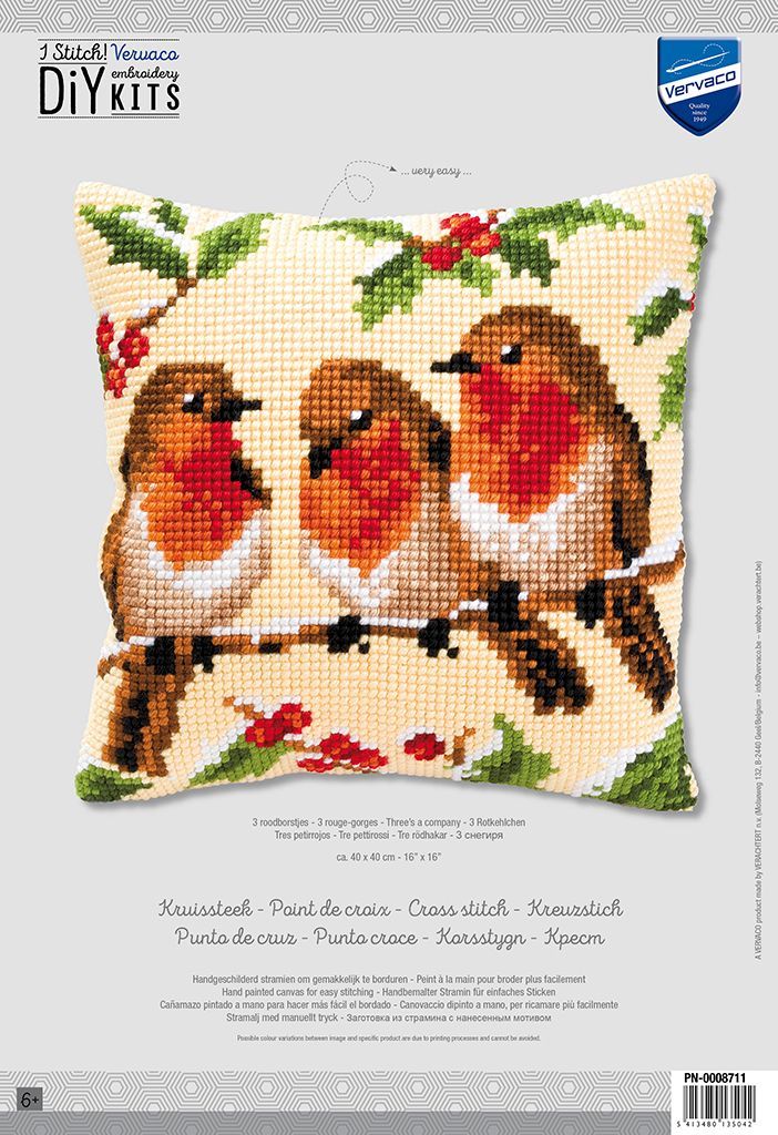 Vervaco PN-0008711 Kreuzstichkissen 3 Rotkehlchen