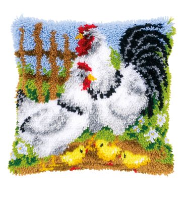 • Vervaco PN-0148984 Knüpfkissenpackung Hühnerfamilie auf dem Bauernhof