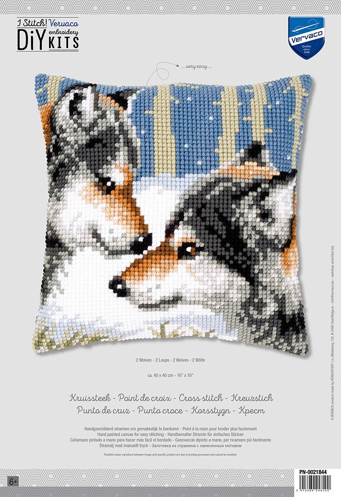 Vervaco PN-0021844 Kreuzstichkissen Zwei Wölfe