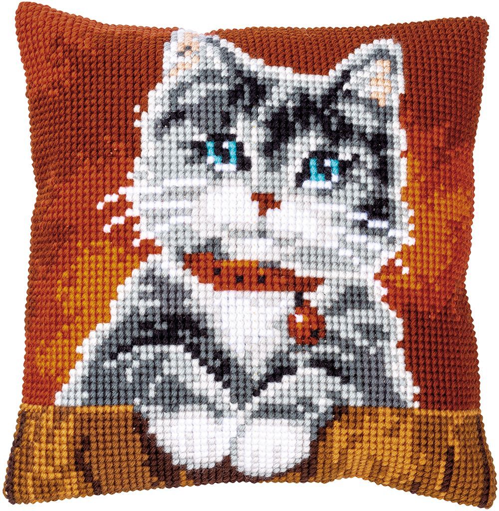 Vervaco PN-0155353 Kreuzstichkissen Katze mit Halsband