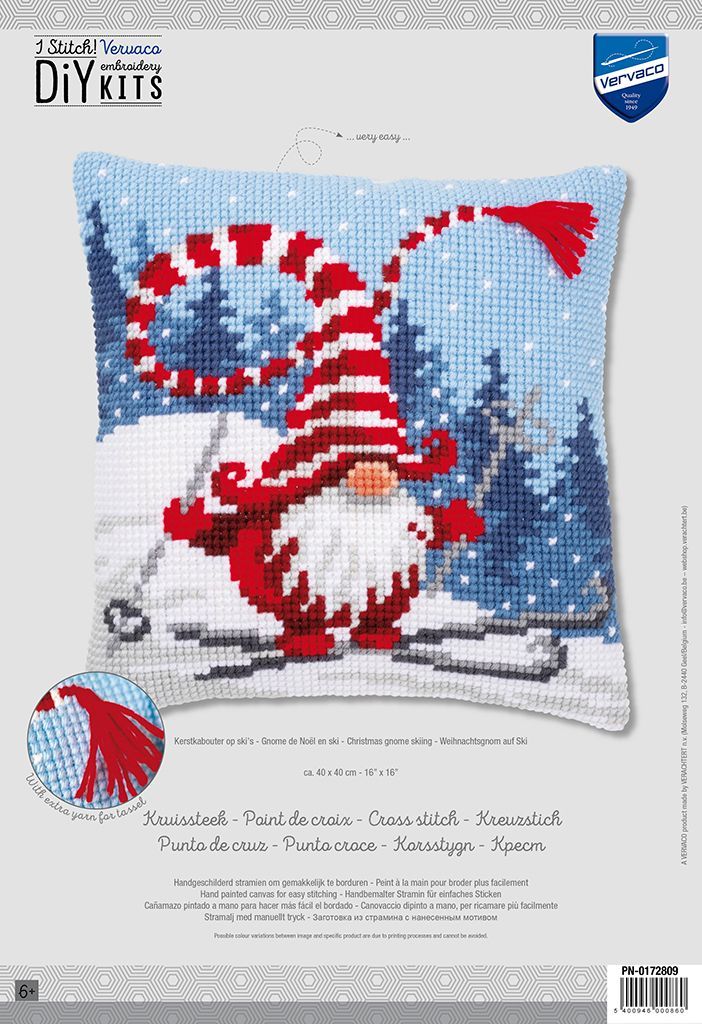 Vervaco PN-0172809 Kreuzstichkissen Weihnachtsgnom auf Ski