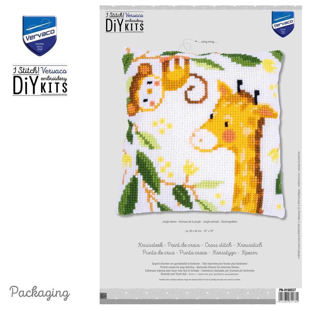 Vervaco PN-0198537 Kreuzstichkissenpackung Dschungeltiere