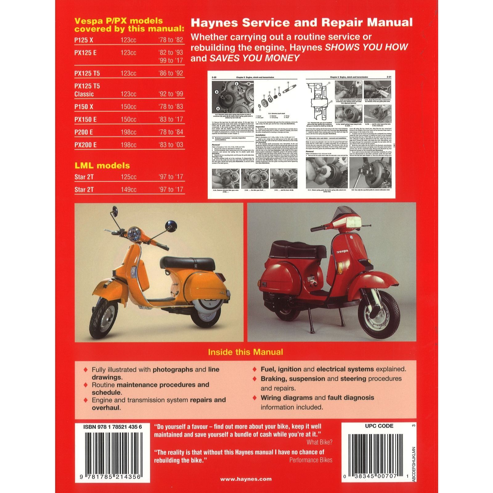 Vespa P PX125, 150 und 200 Roller (1978-2017) Reparaturanleitung Haynes