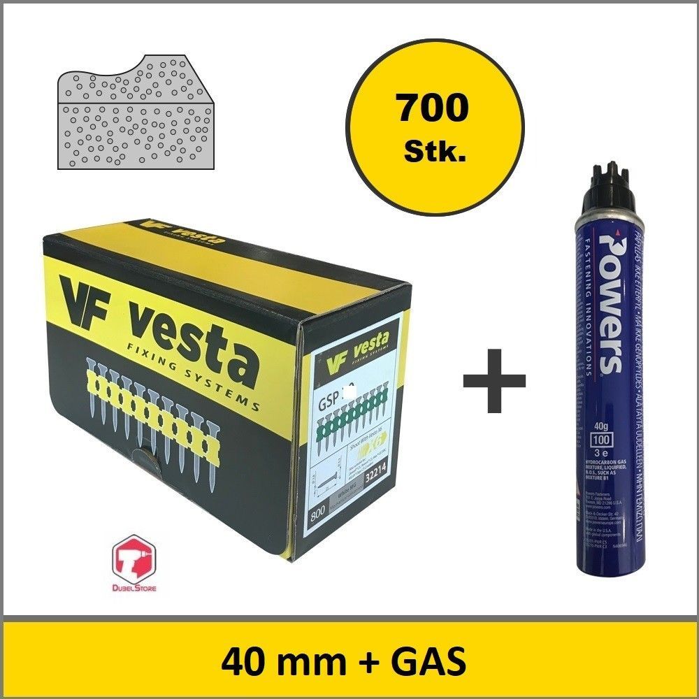 Vesta C5-40 MM Nägel + Gas, Kompatibel für; (Würth DIGA CS-2], (DeWalt C5 ], ...