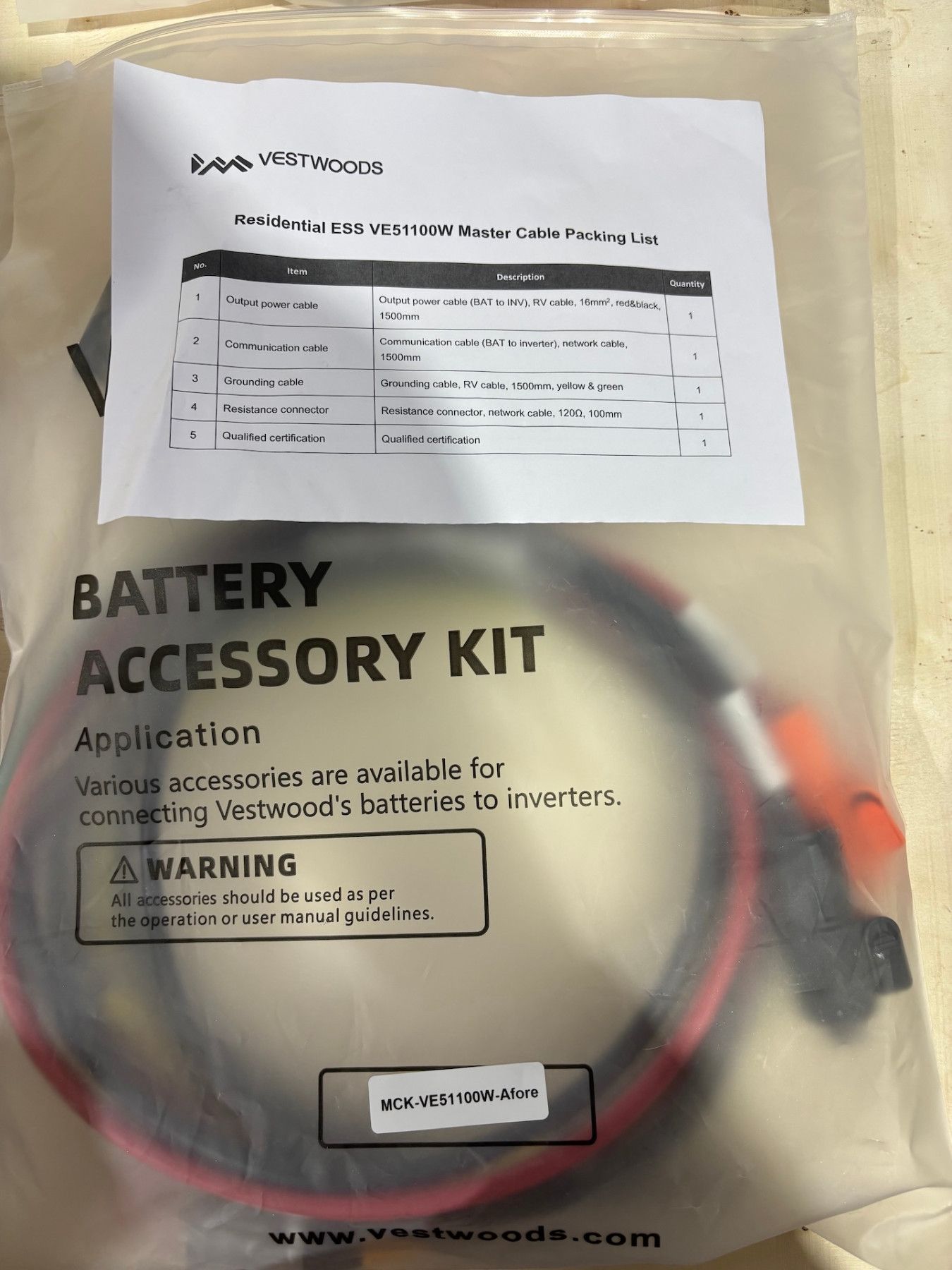 Vestwoods Masterkabel Bestehend aus: Anschluss,- Wechselrichter- und Kommunikationskabel Vestwoods Slavekabel Bestehend aus: Anschluss,- Batterie- und Kommunikationskabel Wichtig: In diesem Angebot wird davon ausgegangen, dass Sie berechtigt sind, das angebotene Produkt zu einem reduzierten MwSt.-Sa