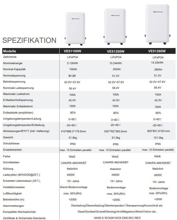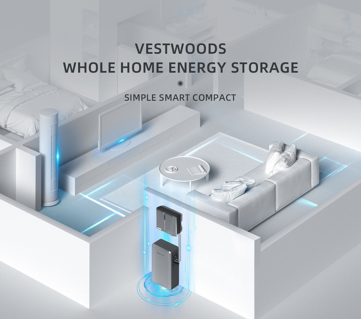 Vestwoods VE51100W, VE51200W, VE51280W 5, 10, 14,3 kWh Batteriespeicher Energiespeichersystem mit moderner Lithium-Ionen-Technologie. Er bietet zuverlässige Leistung, Sicherheit durch integriertes BMS und flexible Wandmontage. Mit IP65-Schutz, einfacher Bedienung und nachhaltiger Konstruktion ist er
