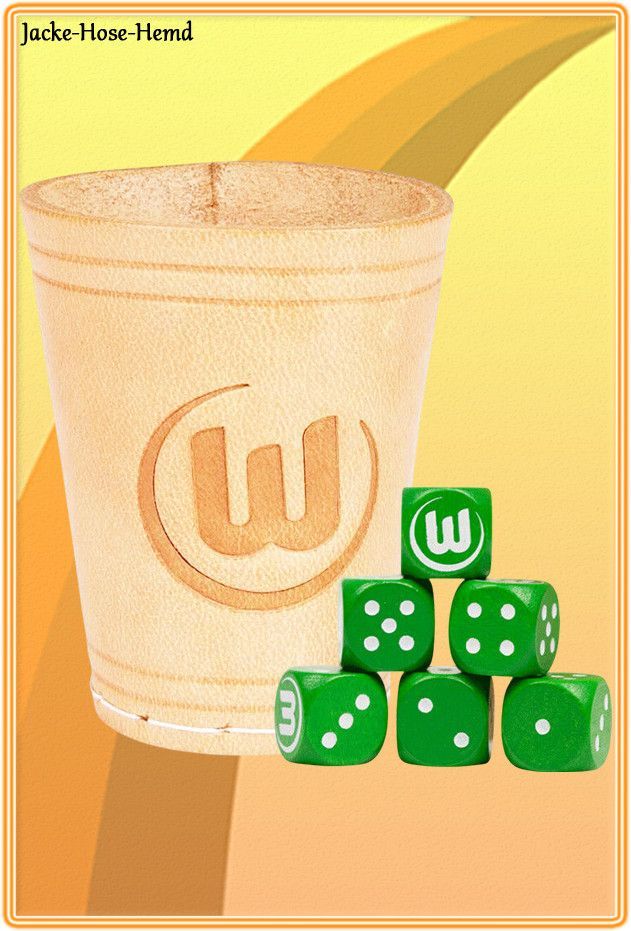 VfL Wolfsburg Würfelbecher Logo 6 Würfeln Knobelbecher Kniffelbecher Grün NEU