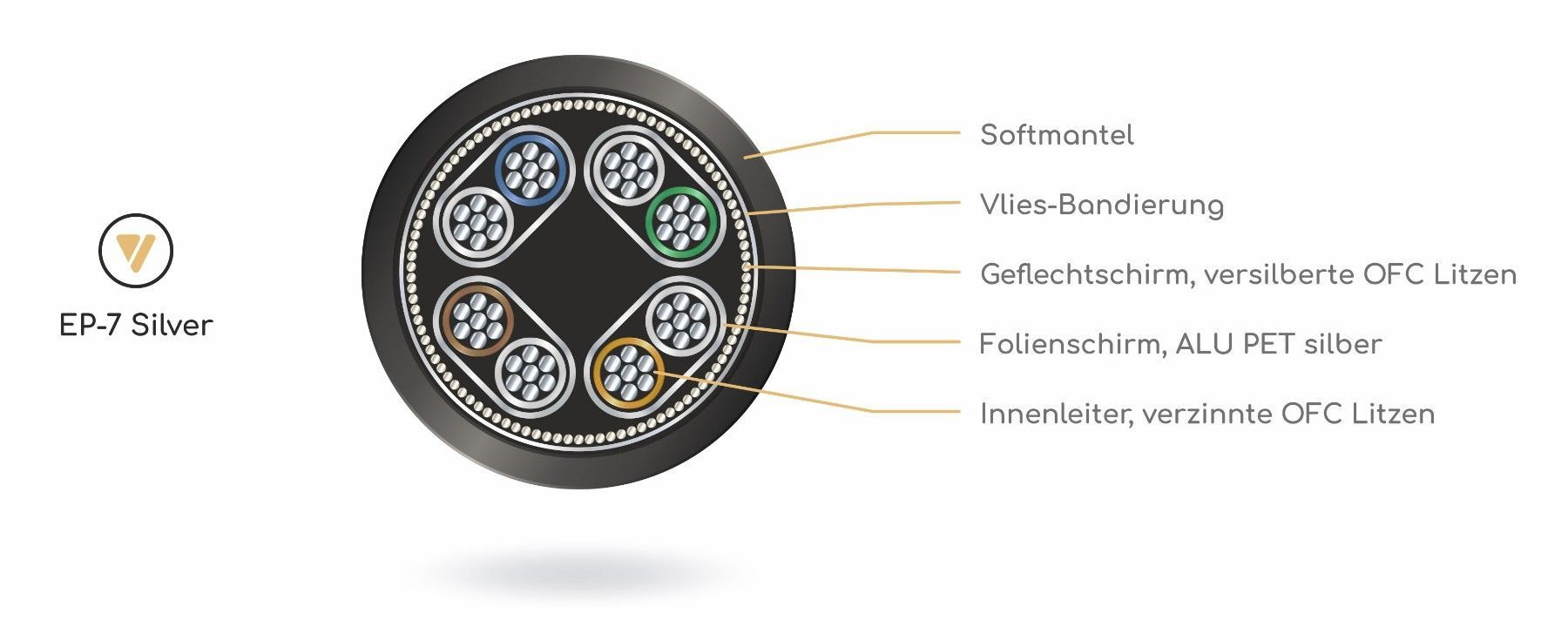 Viablue EP-7 Silver / HighEnd LAN-Kabel / Netzwerk / CAT 7 / OFC / Cobra