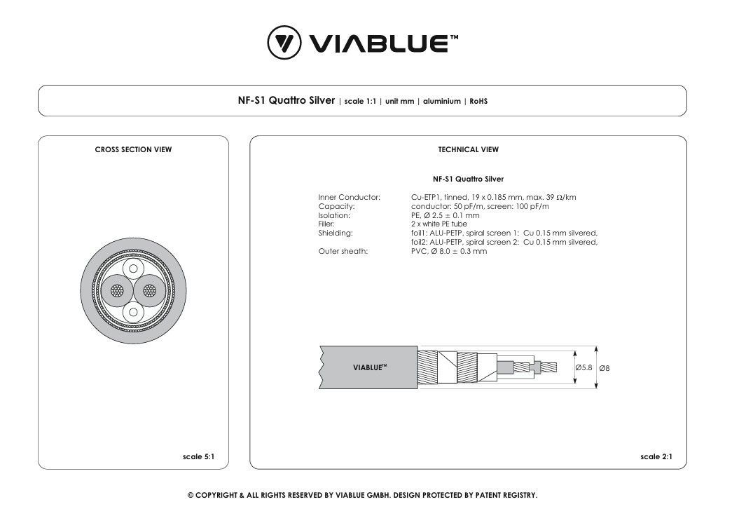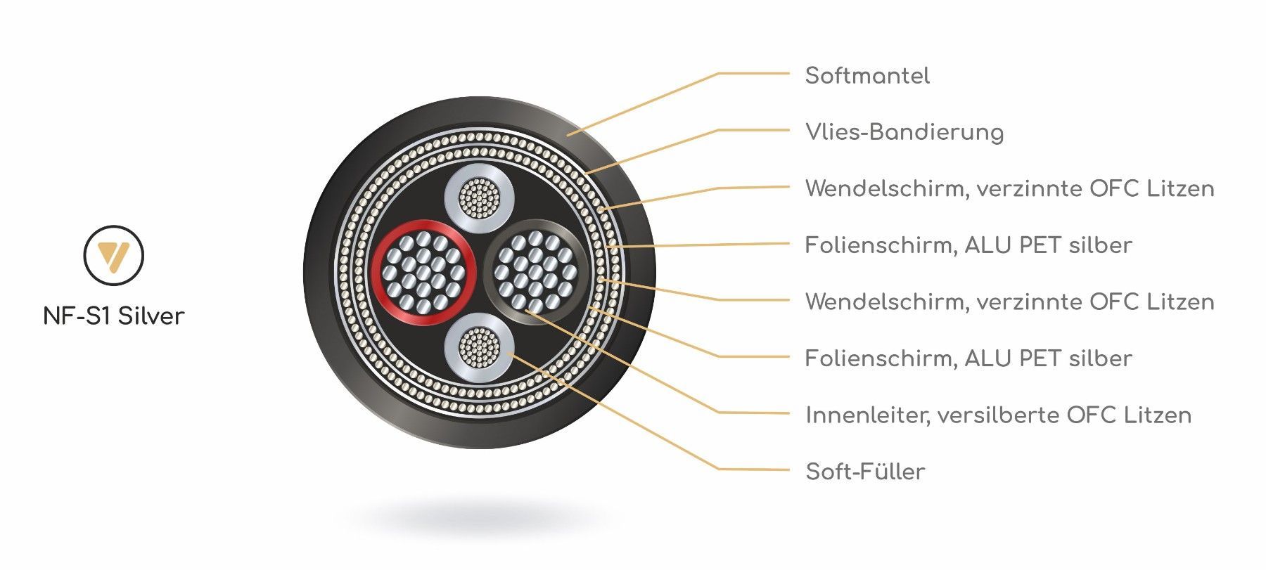 Viablue NF-S1 Silver / Referenz XLR-Kabel / 4-fach Schirm / T8 / 1 Paar / Cobra