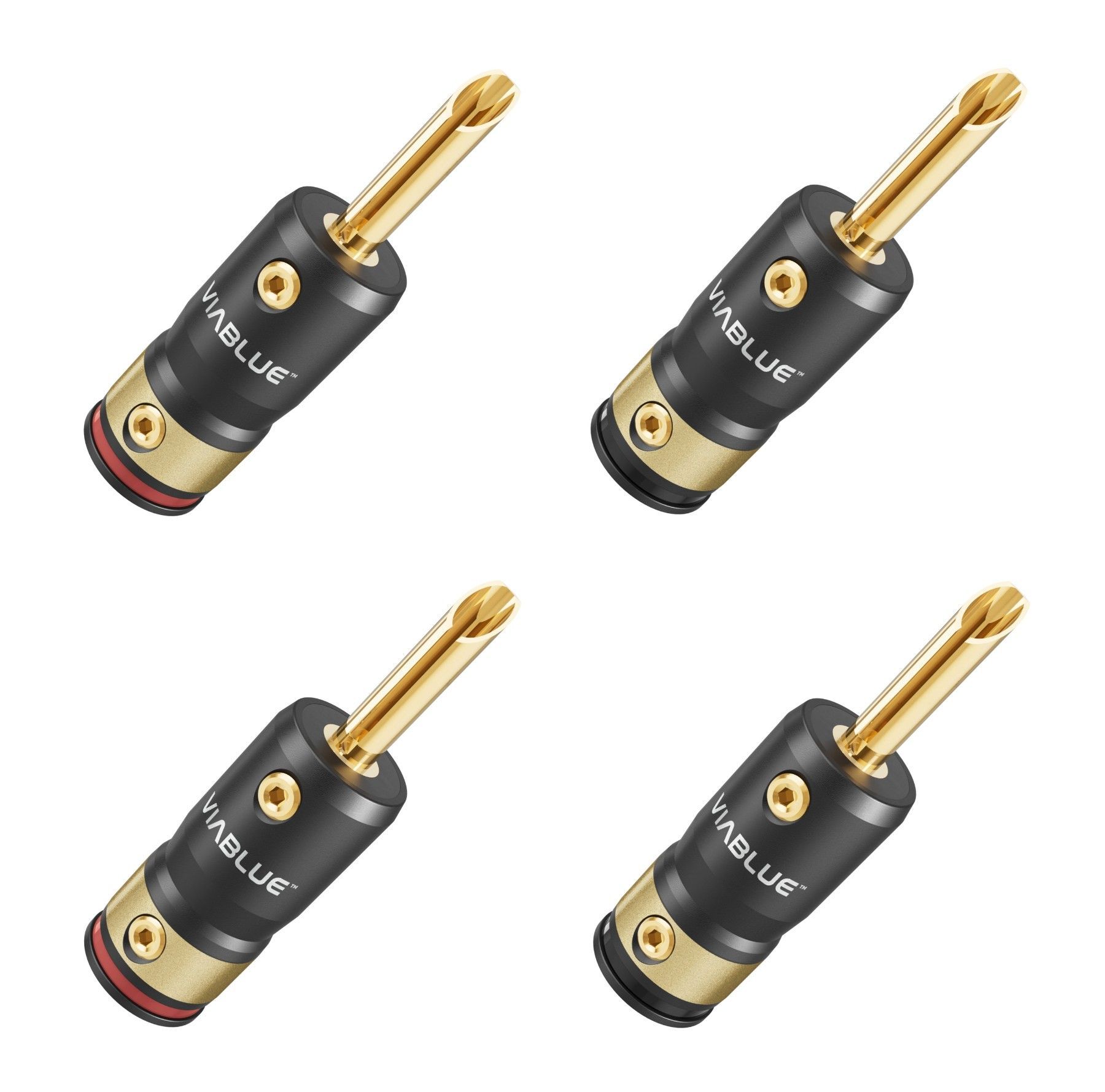 Viablue T8 / HighEnd Bananenstecker / 2 Paar / Hohlbananas / 24k / Alu-Gehäuse