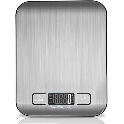 Viboos digitale Kéchenwaage 5 kg Edelstahl ultradénn mit LCD Silber