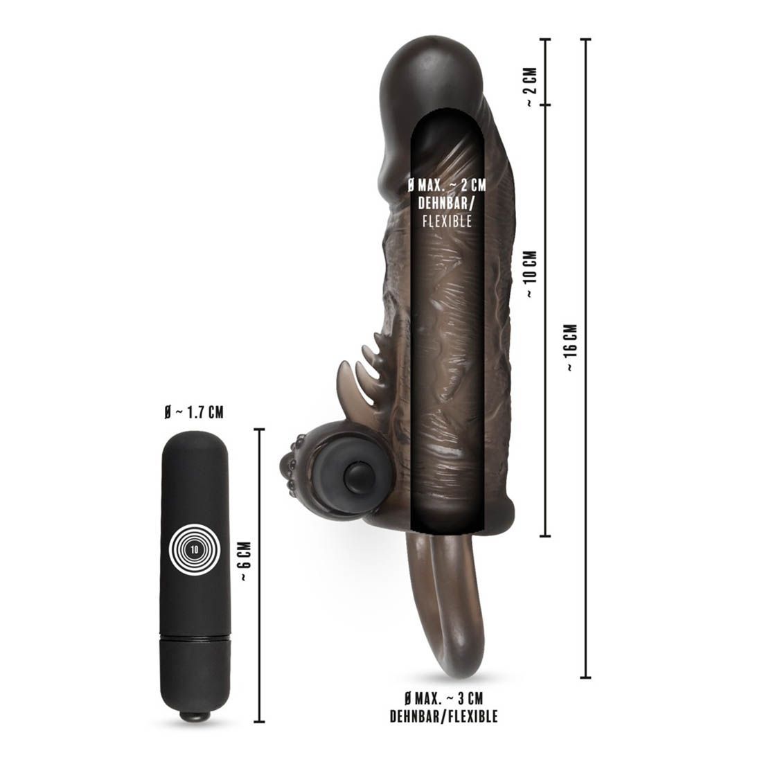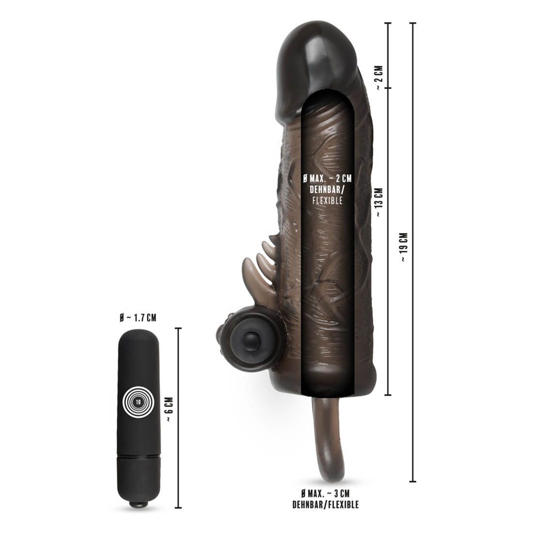 Rebel Vibro Penishülle mit Hodenring Verlängerung 2cm Sleeve 10 Vibration Sexspielzeug