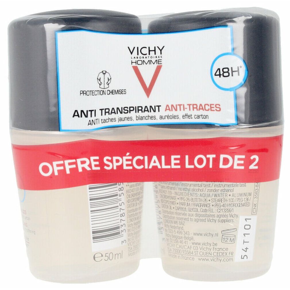 Vichy Homme Deodorant 48h Anti - Transpirant Roll - On 2 x 50ml