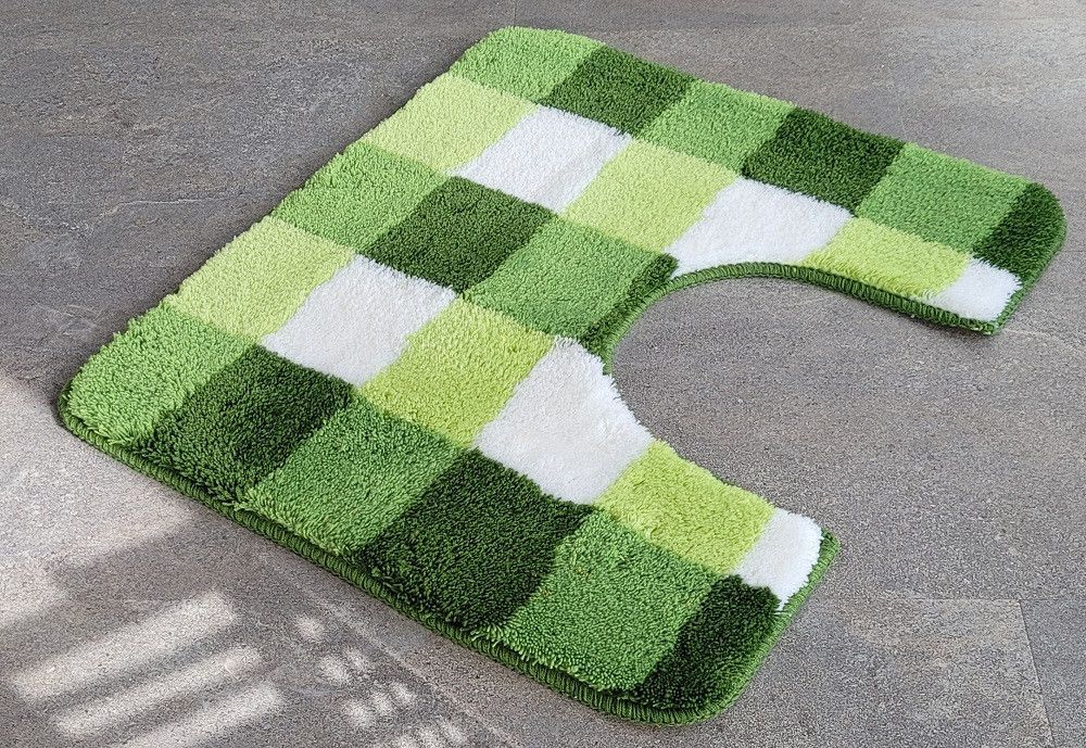 Vichy Kiwigrün WC-Vorleger mit Ausschnitt 55x50cm. Florhöhe: 20mm