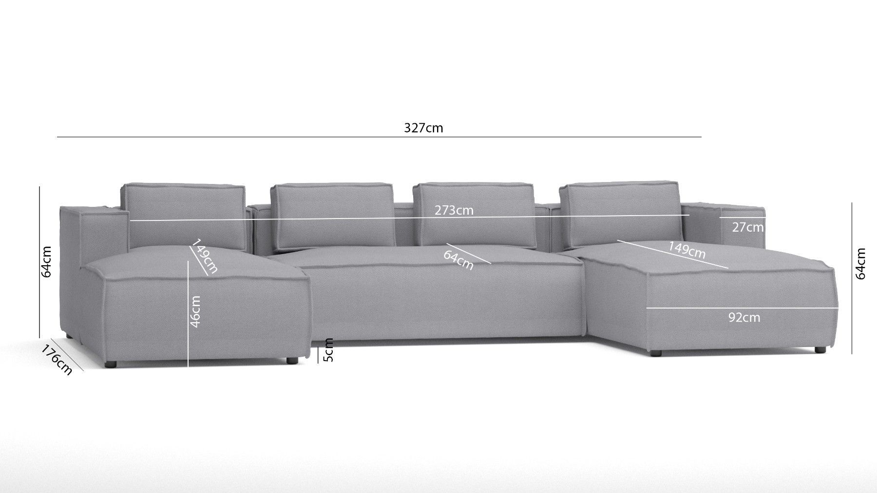 B 327 cm x T 176 cm x H 64 cm