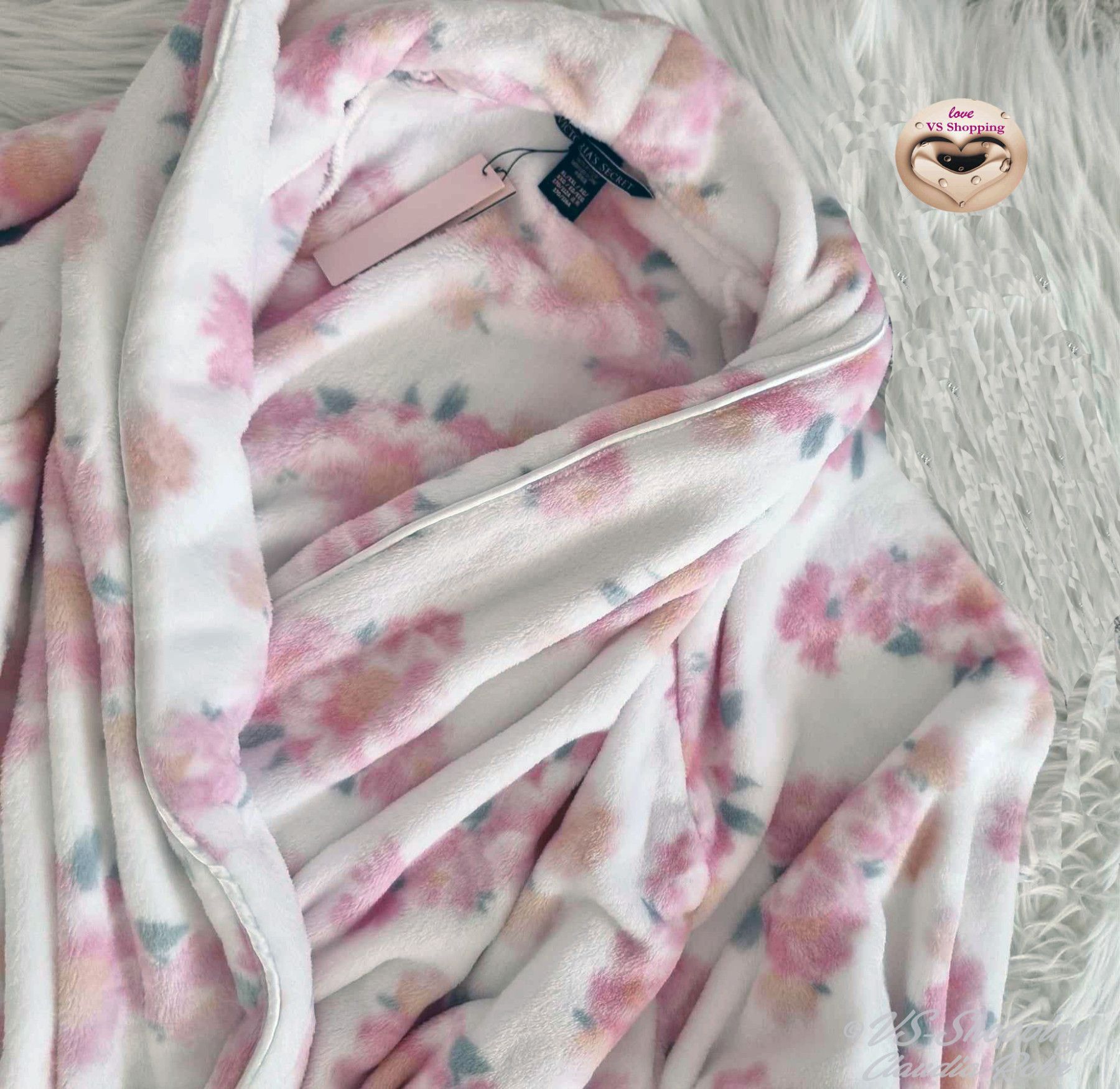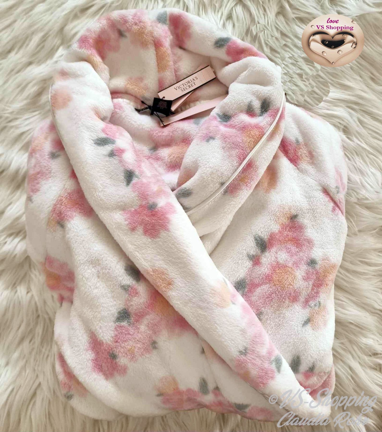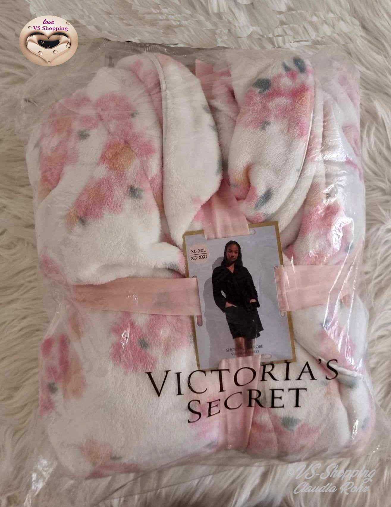 Victoria´s Secret Bademantel *flauschig & kurz *Satin Einfassung am Kragen *Farbe: **off white mit Blumenmuster *lockere Passform /fällt groß aus *Easy Fit *Größe XL/XXL *Länge ca. 100 cm gemessen ab Schulter-Halsansatz *Ärmellänge ab Schulter-Halsansatz ca. 76 cm *Ärmelöffnung einfach gemessen ca. 18 cm *Breite von Achsel zu Achsel gemessen ca. 66 cm *Bindegürtel