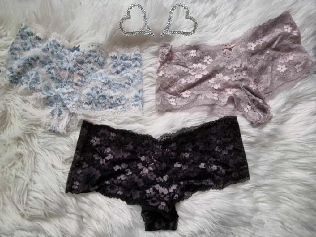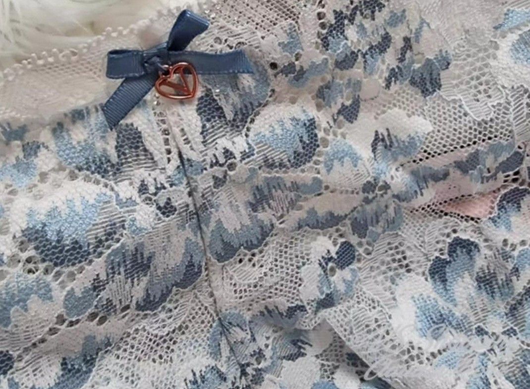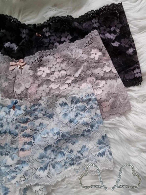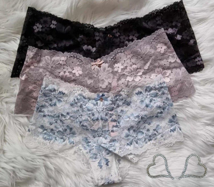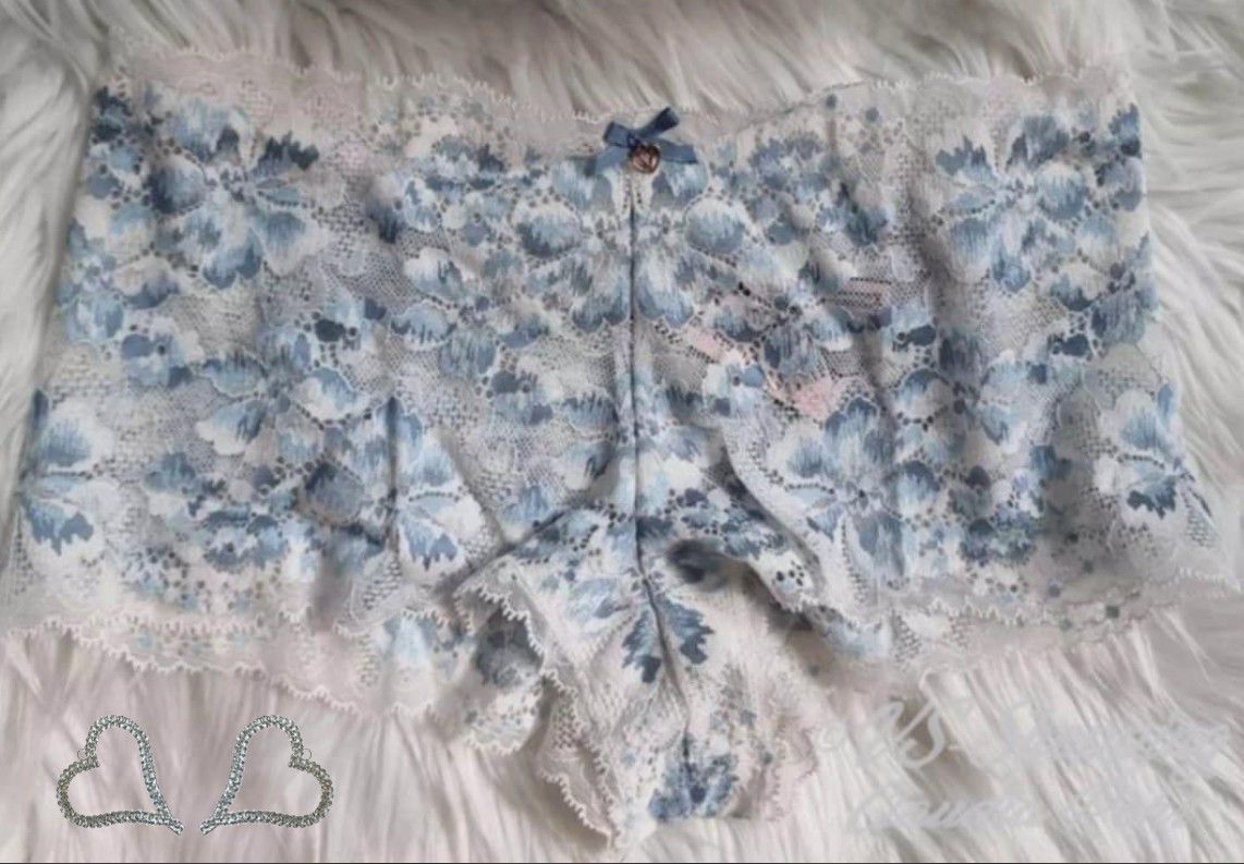 Victoria's Secret ** Body by Victoria ** Allure ** Shorty-Höschen aus Spitze ** sexy Höschen aus Blumenspitze ** Farbe: Cocosweiß mit blauem Farbverlauf ** Farbe: Violet Gray ** Shorty-Höschen für jeden Tag ** verführerische Silhouette ** Tiefer Sitz ** Spitze aus mindestens 50 % Recycling-Garnen **