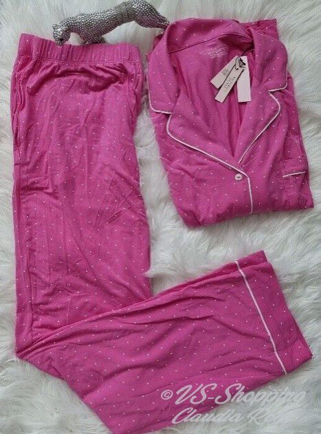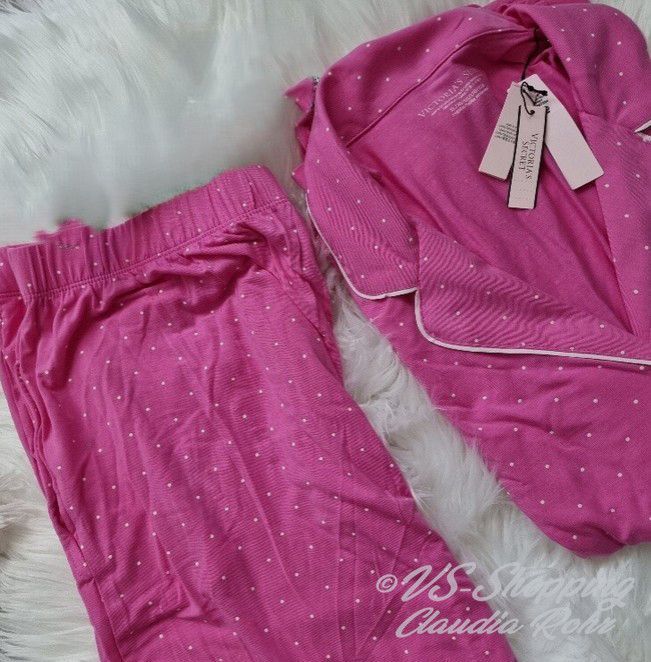 Victoria´s Secret Langer Pyjama aus Modal *bequemes Set *Hose elastischem Bund mit Kordelzug *Oberteil reicht bis zur Hüfte *butterweichem Tragekomfort mit Stretch *Lockere Passform *Maschinenwäsche *Farbvarianten: *Herstellerfarbe Sommer-Pink mit Tupfenmuster oder *Herstellerfarbe:Blau camouflage oder *Herstellerfarbe Mitternachtssee Der Markenname ist Eigentum des Rechteinhabers und wird hier nur verwendet, da er Bestandteil des Produktes ist und seine Qualität kennzeichnet.