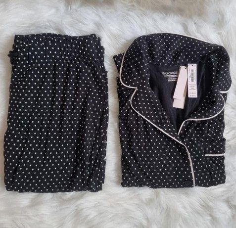 Victoria´s Secret Langer Pyjama aus Modal *bequemes Set *Hose elastischem Bund mit Kordelzug *Oberteil reicht bis zur Hüfte *butterweichem Tragekomfort mit Stretch *Lockere Passform *Maschinenwäsche *Farbvarianten: ** rosa (reines pink) ** Herstellerfarbe: weiß mit Blumen ** Herstellerfarbe Lippenstift rot ** schwarz mit feinen Punkten Der Markenname ist Eigentum des Rechteinhabers und wird hier nur verwendet, da er Bestandteil des Produktes ist und seine Qualität kennzeichnet.
