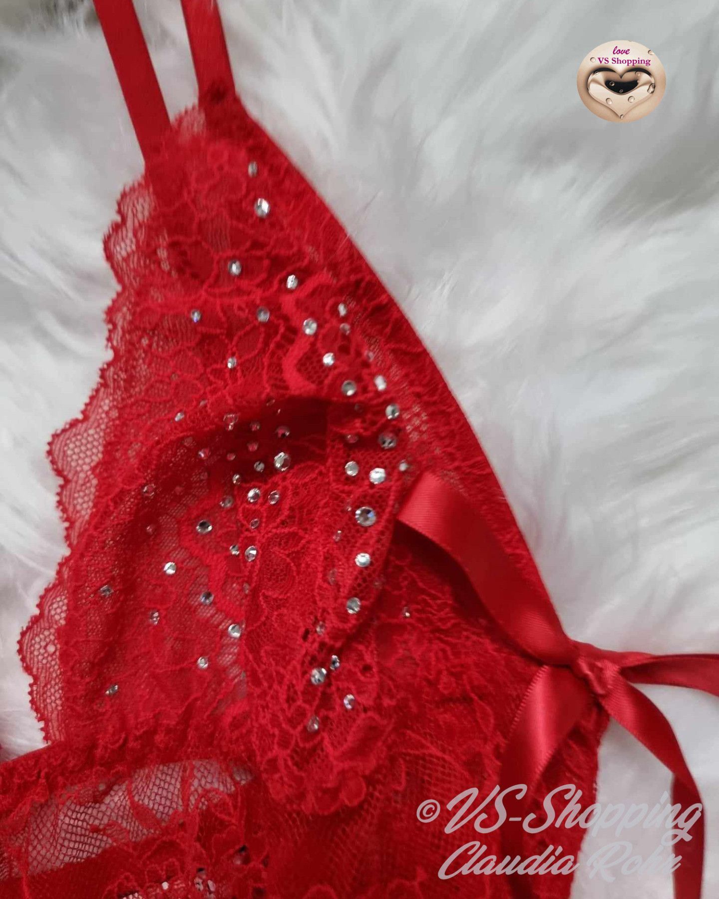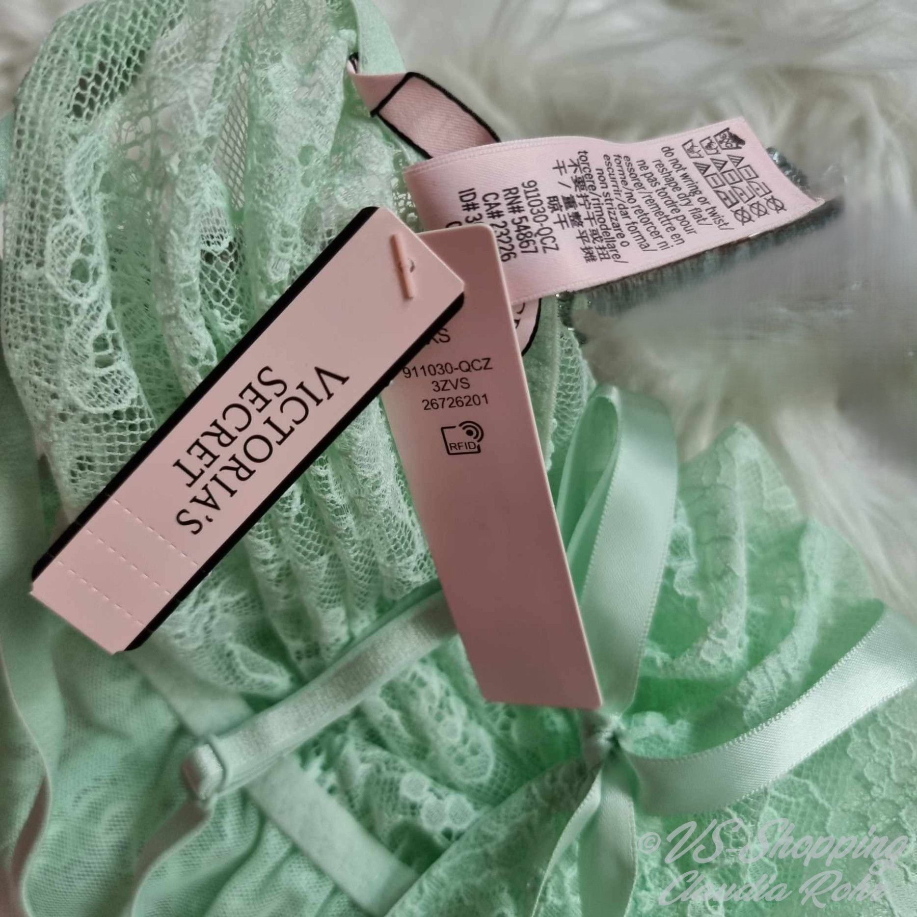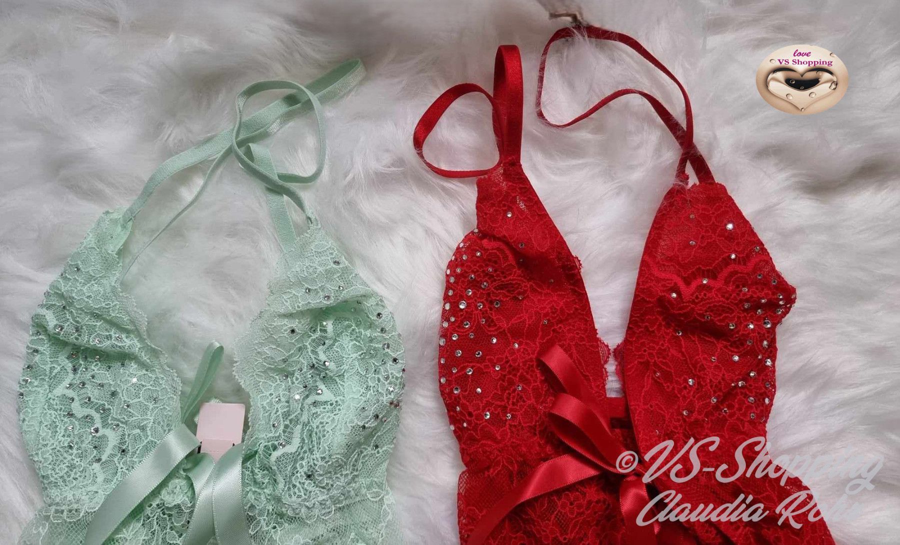 *Victoria´s Secret *Babydoll aus Blumenspitze *Farbe: Nebliges Jadegrün oder Lipstick *Körbchenverzierung mit glitzerndem Strass *Schleife & flauschige Bommelverzierung über dem Schlitz *Empiretaille *Verstellb. Träger *V-String mit PomPom *Farbe etwas heller als auf den Bildern *Handwäsche *60% Recycl.-Polyamid/40% Polyamid *Körbchen: 59% Recycl.-Polyamid/29% Polyamid/12% Elastan *String* *Hauptteil: 88% Polyamid/12% Elastan *Spitze: 67% Recycl.-Polyamid/22% Polyamid/11% Elastan