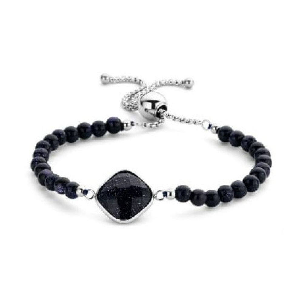 Victoria Silberfarbige schwarz gesteinte, perlenbesetzte Armband