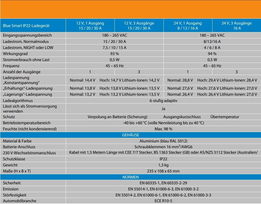 Victron Energy Blue Smart IP22 Ladegerät 24V mit Bluetooth