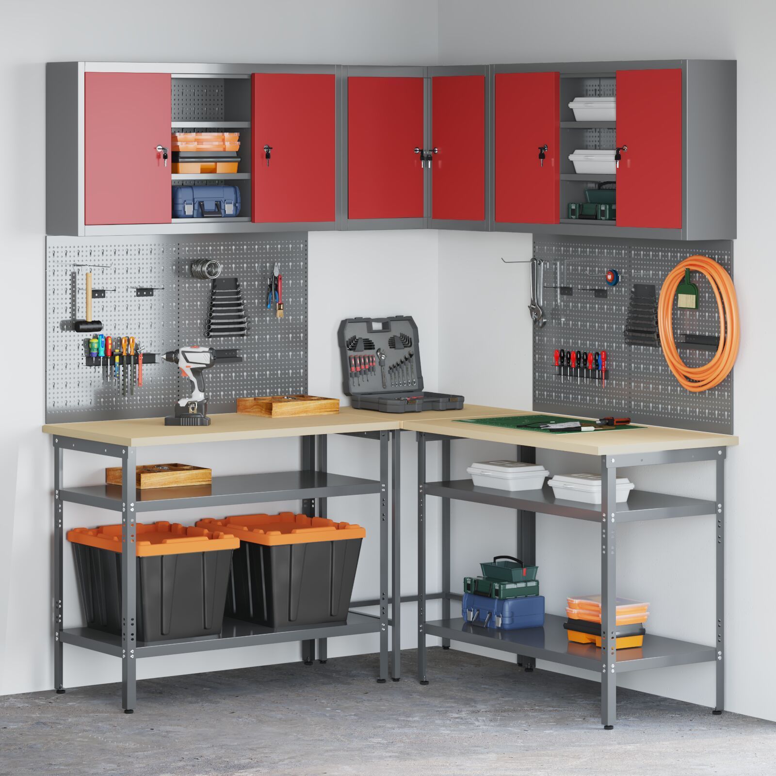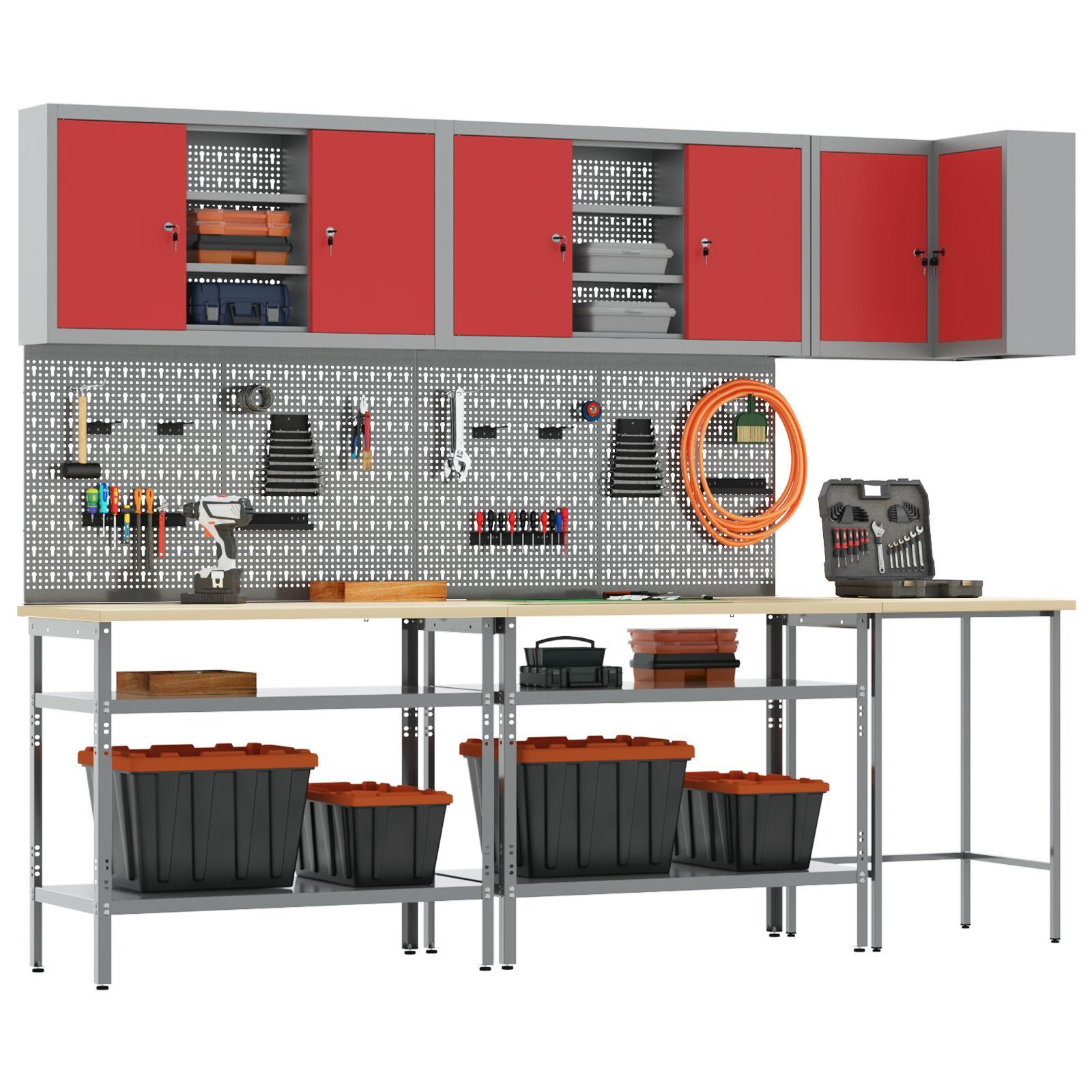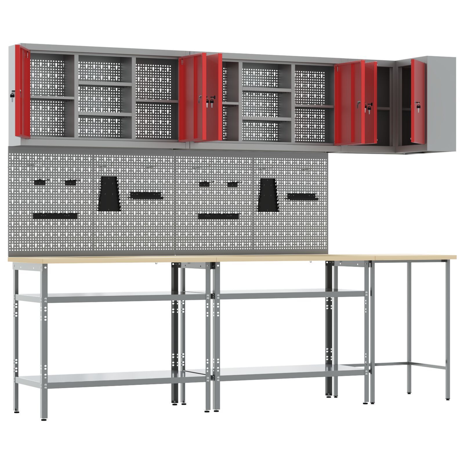 vidaXL vidaXL 10-teiliges Werkzeuglager-Tischset in Rot aus Holzwerkstoff und Metall