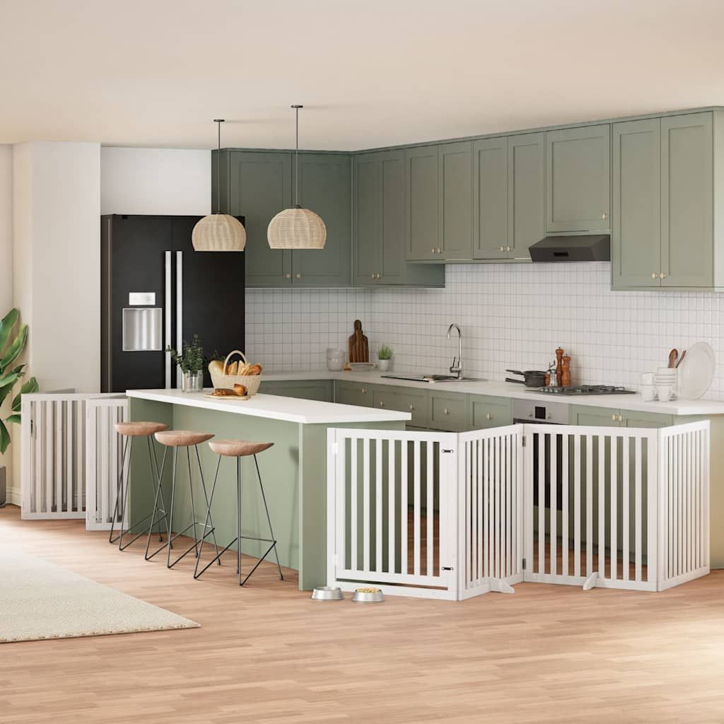 vidaXL vidaXL 10-tlg. Hundetor mit Tür Faltbar Weiß 800 cm Pappelholz
