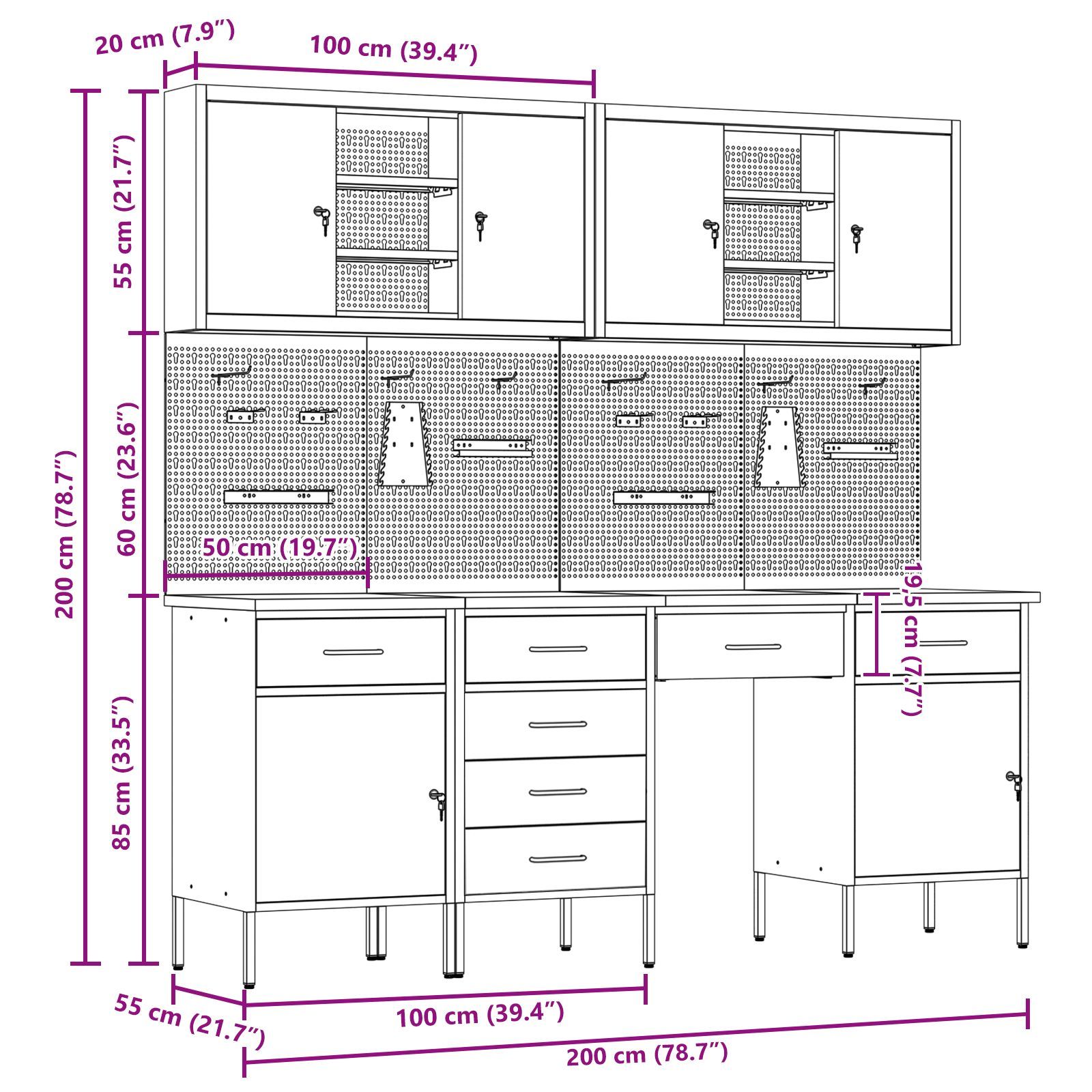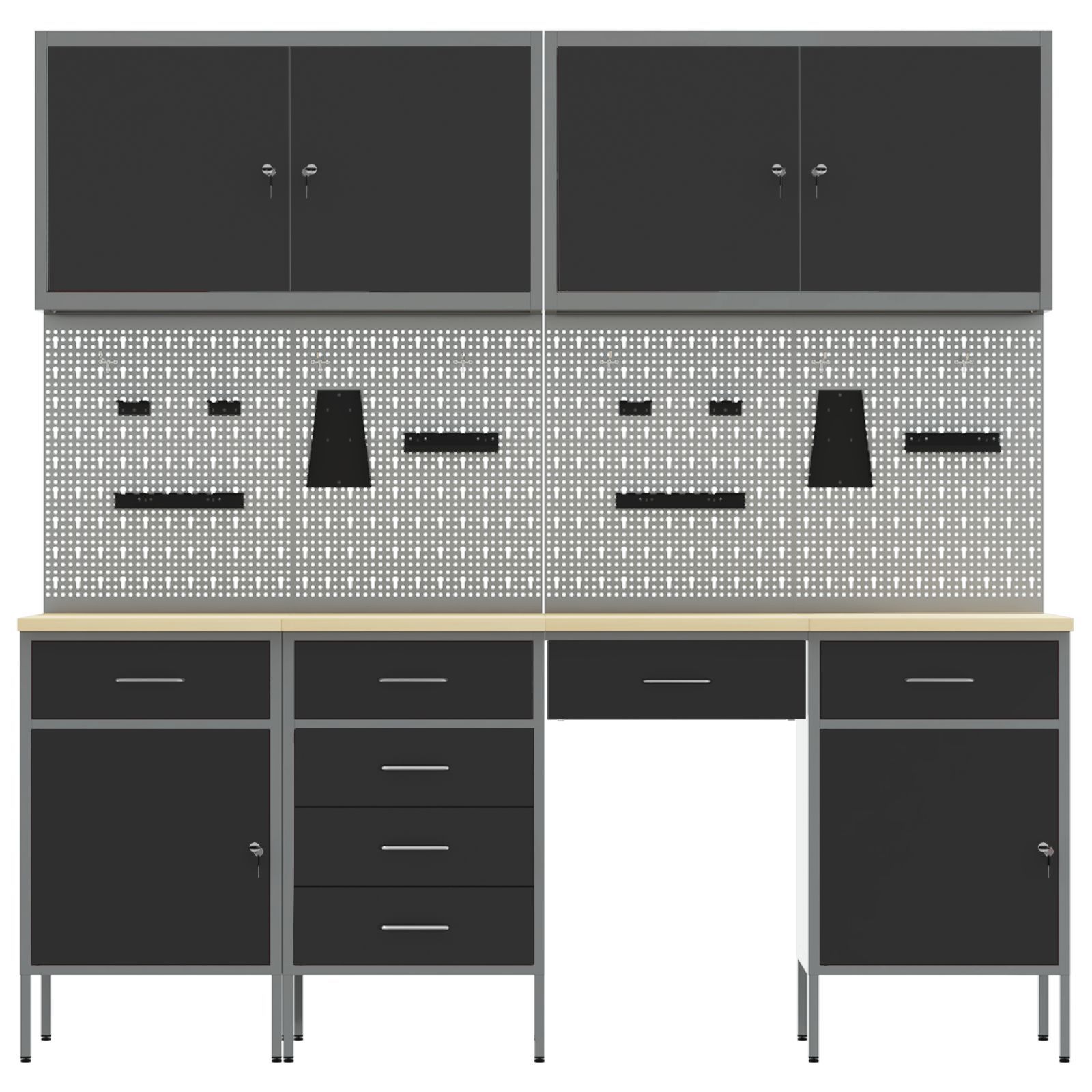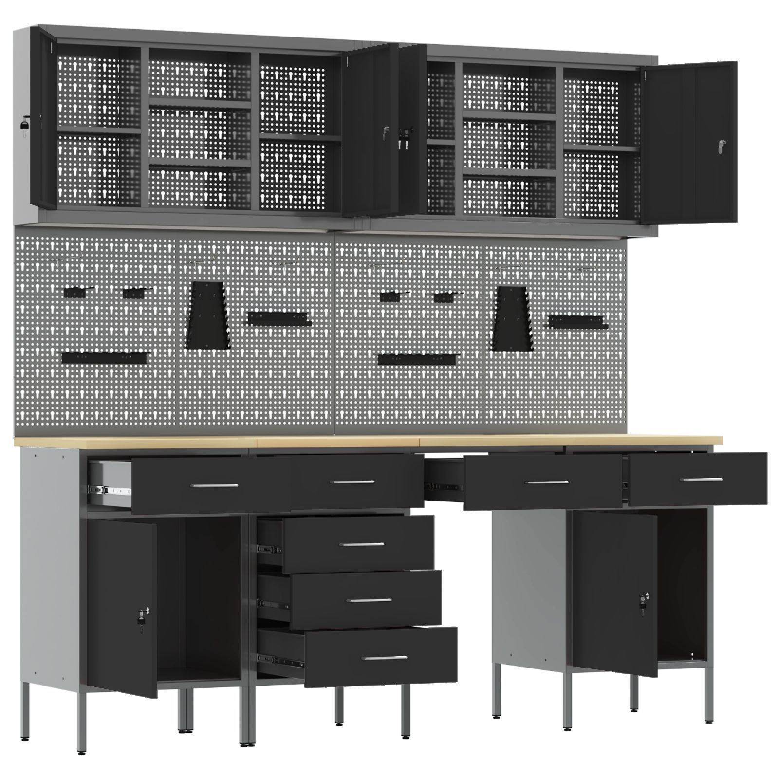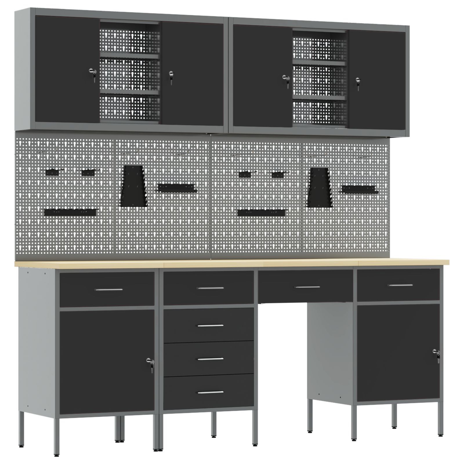 vidaXL vidaXL 10-tlg. Werkbank-Set Schwarz Stahl