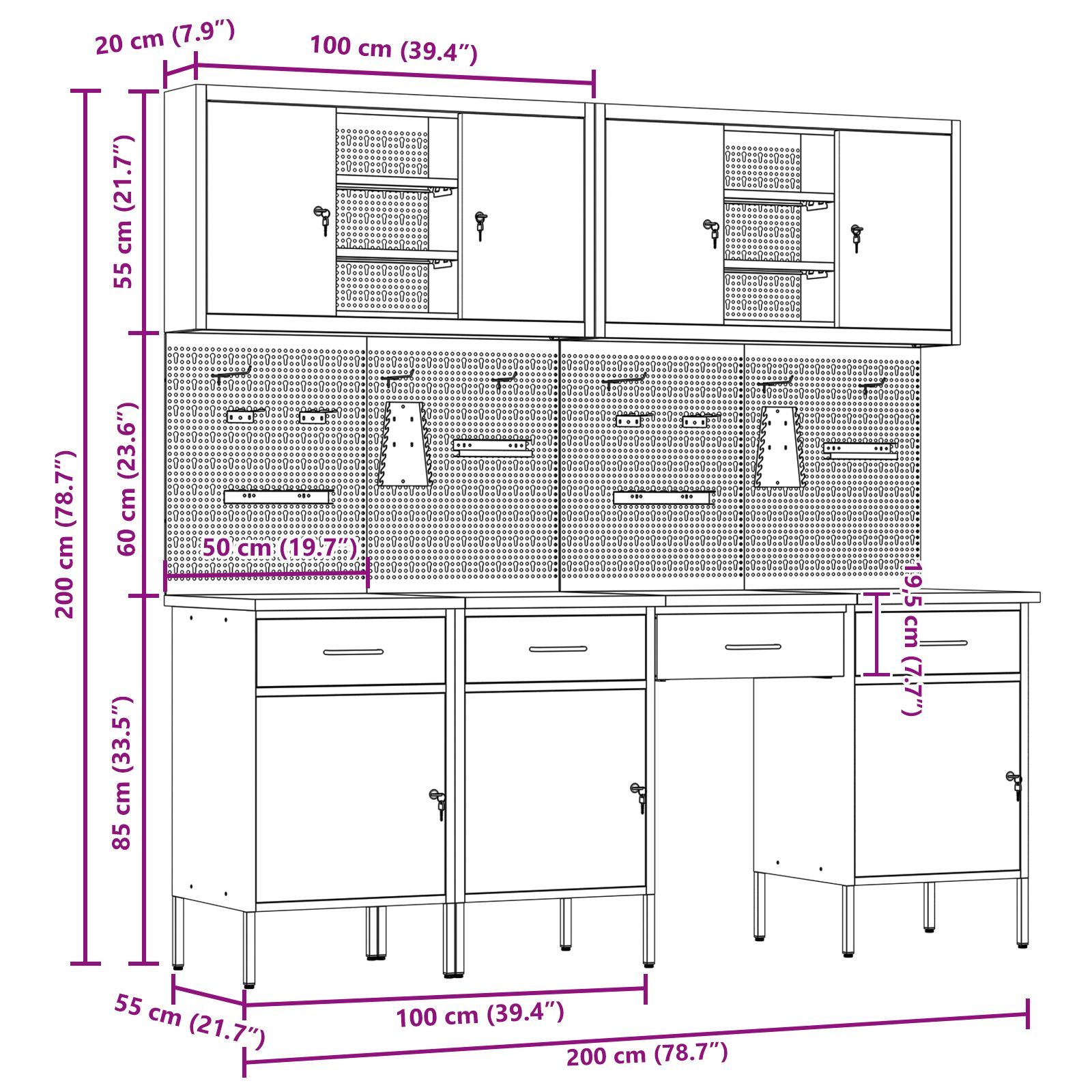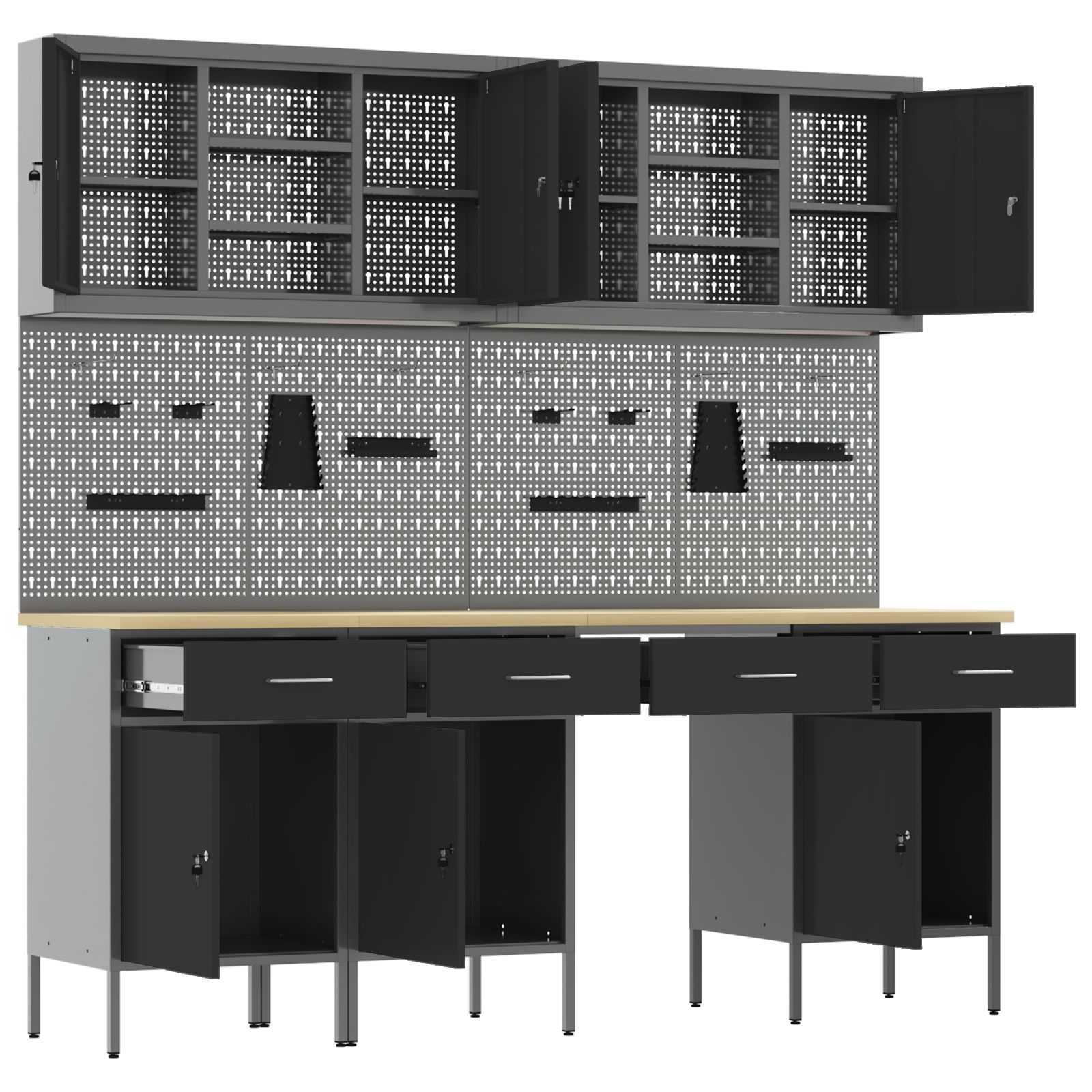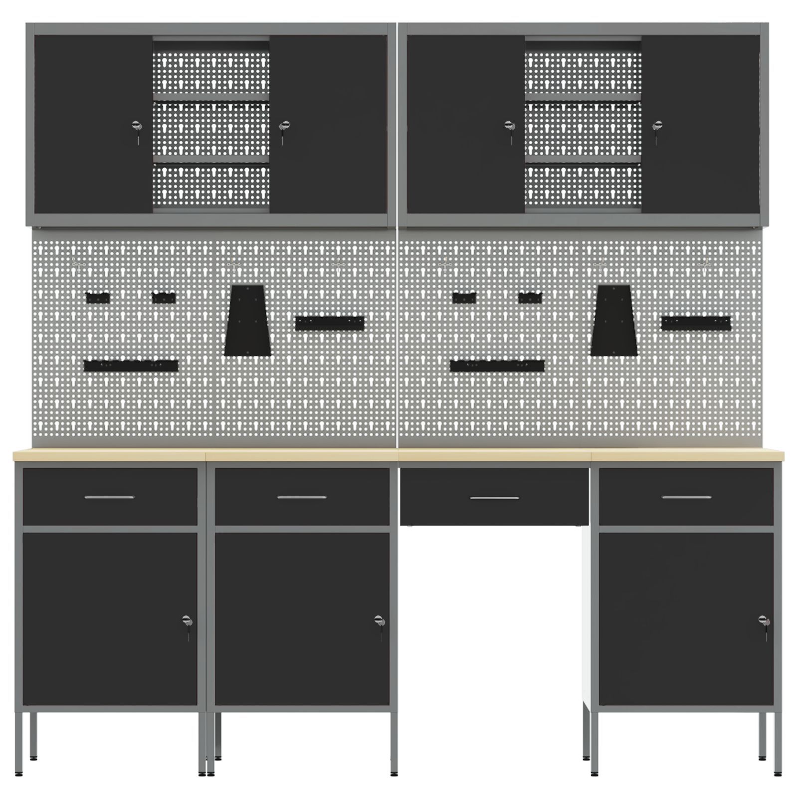 vidaXL vidaXL 10-tlg. Werkbank-Set Schwarz Stahl